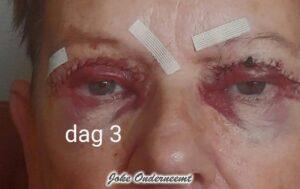 Daarna mocht ik naar huis en ja als de verdoving eruit is na een paar uur dan trekt het een beetje maar dat was de dagen er na ook prima te doen.. Wel dikke oogleden en blauw maar dat trok best snel weg en ik zag iedere dag mijn ogen “groter” worden..