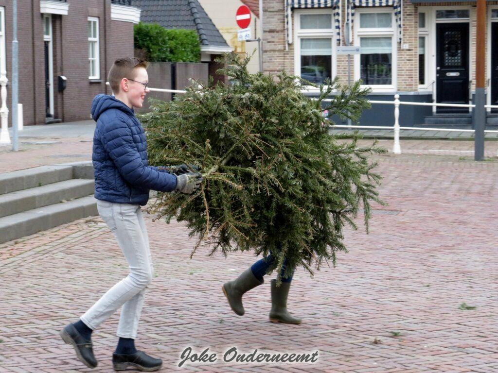 En het waren er weer ontzettend veel dit jaar. In Genemuiden konden ze worden ingeleverd op het Havenplein en dat leverde vijftig euro cent op per boom..