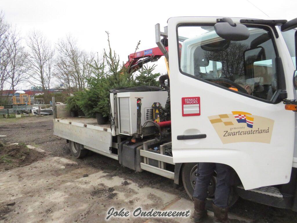 De mensen van de Gemeente Zwartewaterland hielpen gelukkig de kinderen want de meeste bomen waren groter dan zij zelf.. nou ja niet iedere boom want er waren ook schattige kleine boompjes bij.