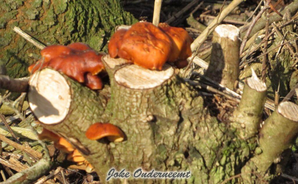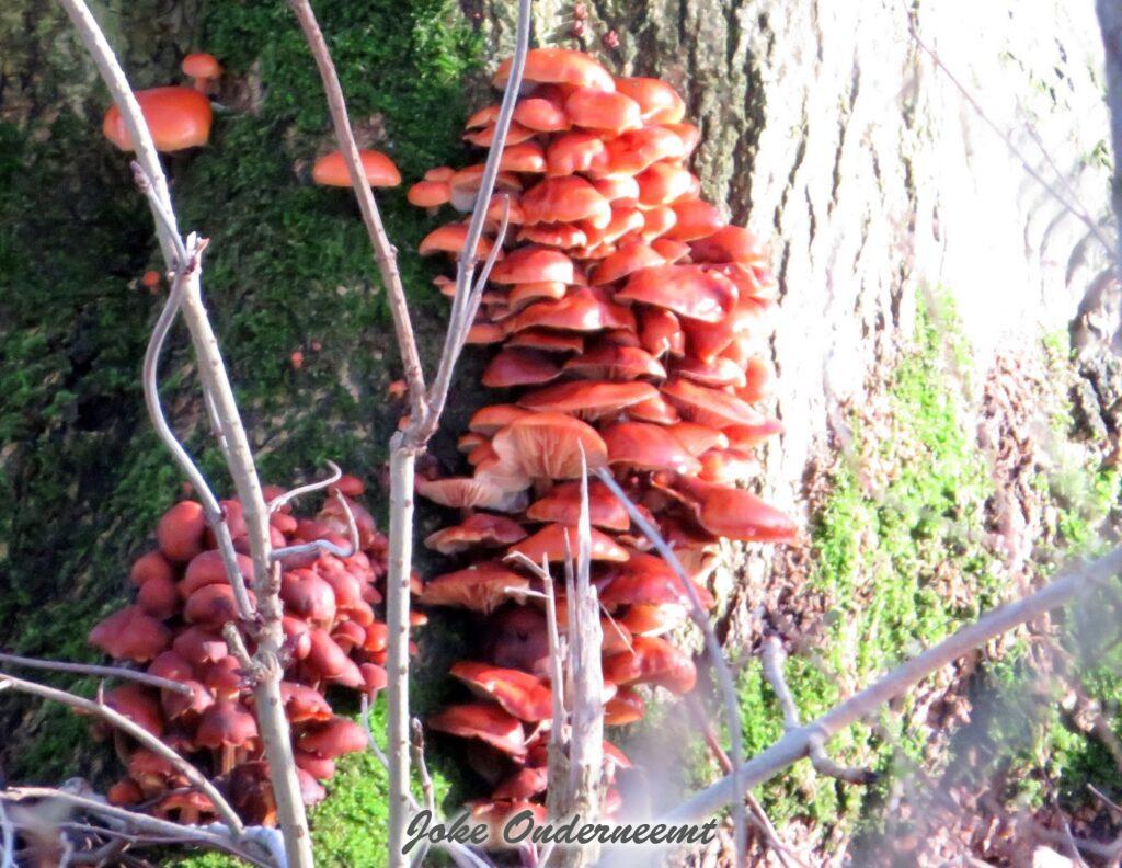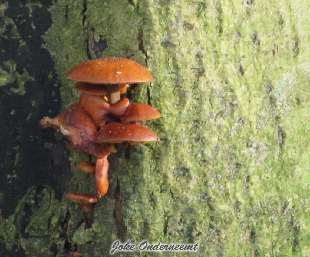 Ik kon helaas niet slootje springen met die vervelende voet , maar daarom de paddenstoelen op de bomen maar even ingezoomd, altijd handig.