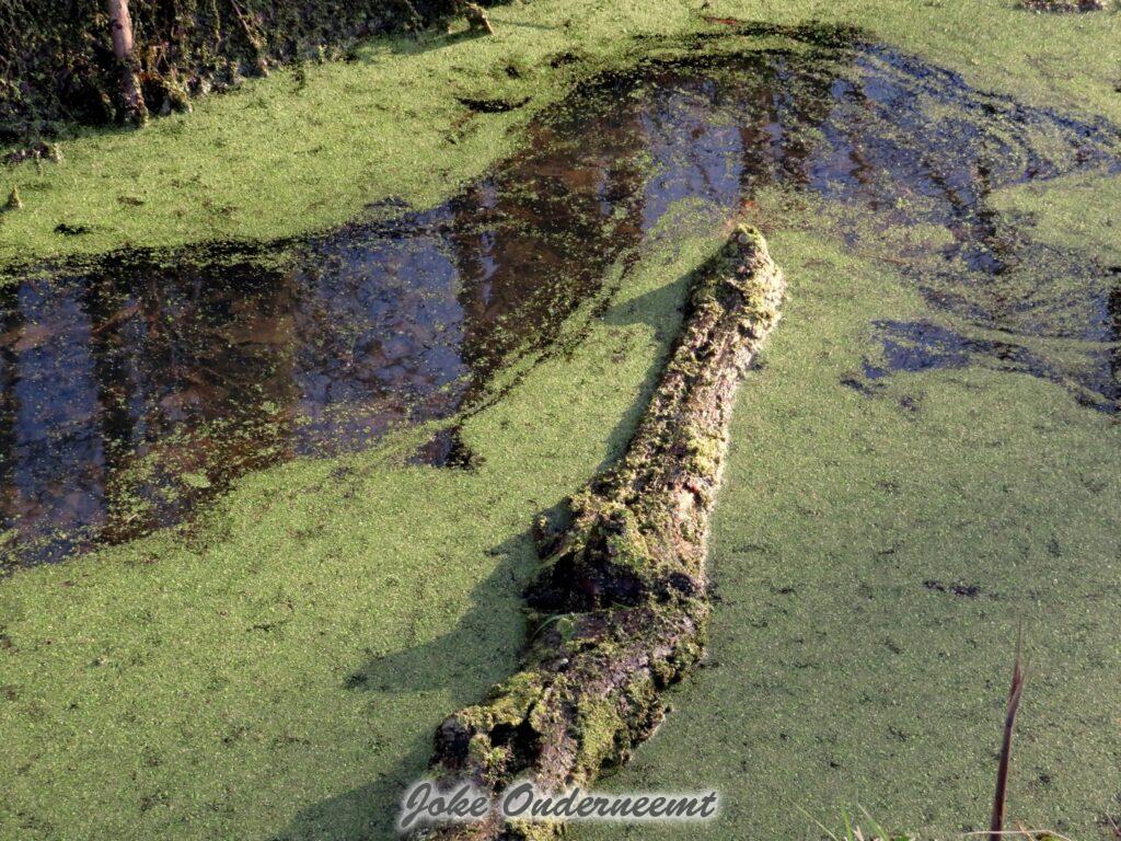 In de sloot dacht ik toch echt even een krokodil te zien met een lange snuit, maar bij nader onderzoek bleek het een stuk hout natuurlijk.