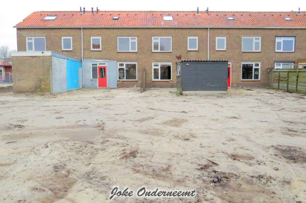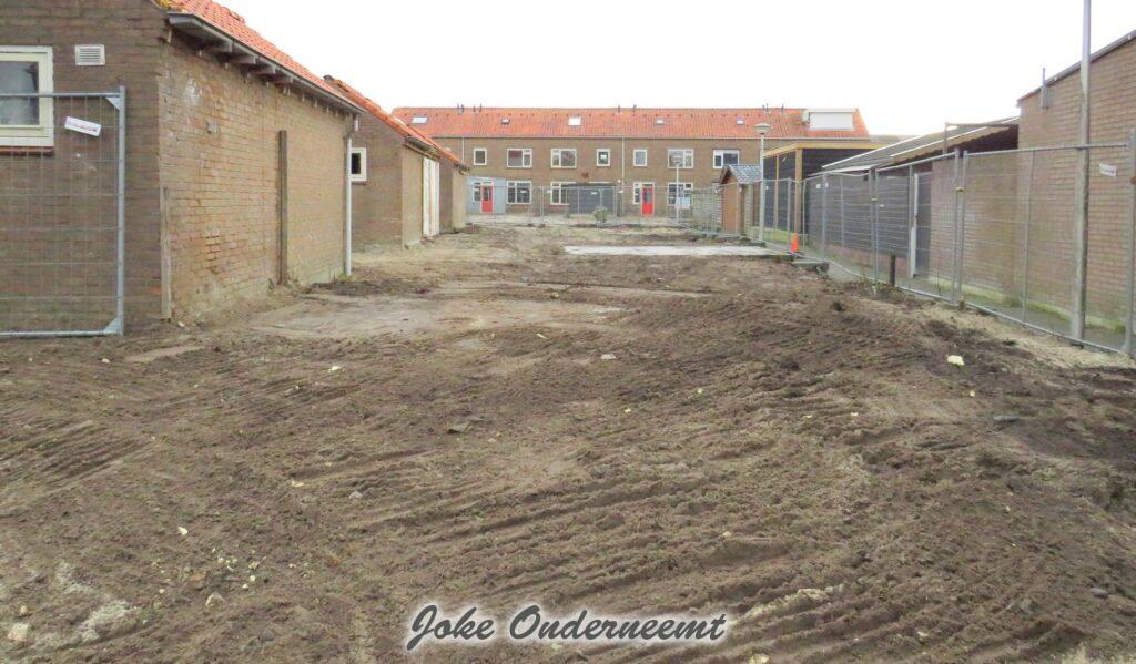 Maar nu is Jac de Olde uit Sint Jansklooster al druk bezig en die hebben alle tuinen “met de grond gelijk gemaakt” en dat was nog best wat werk.
