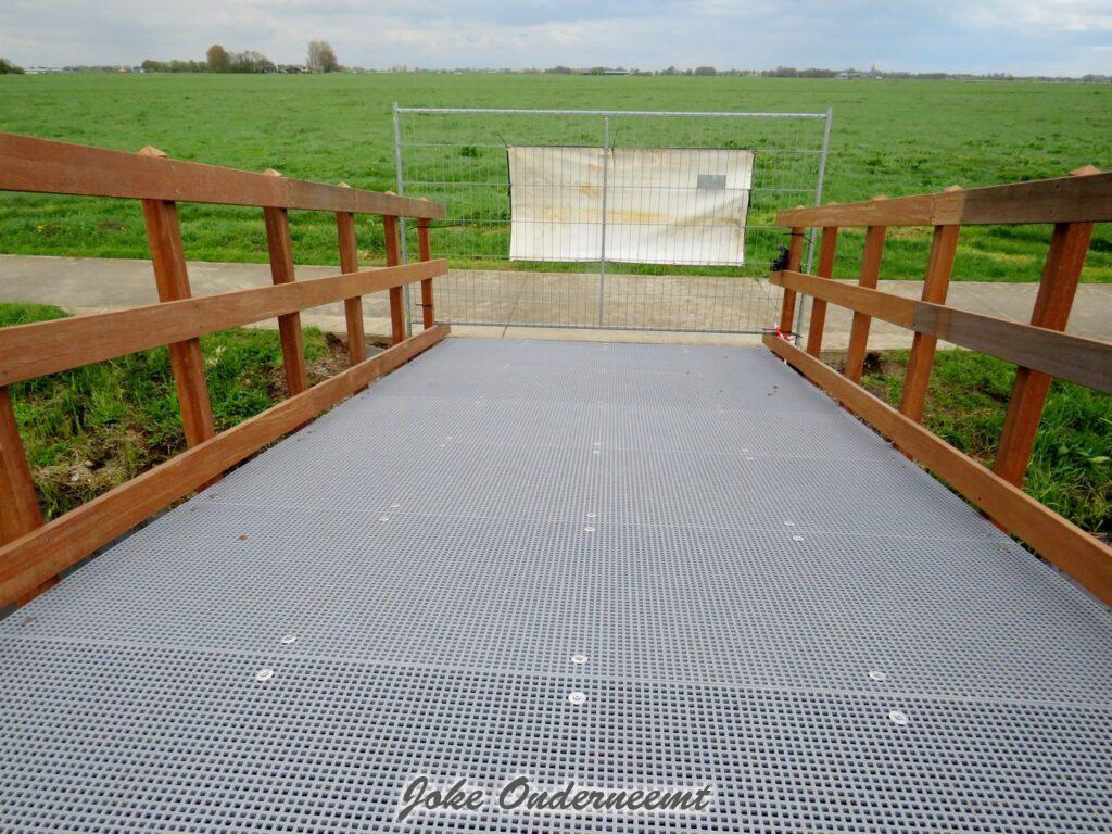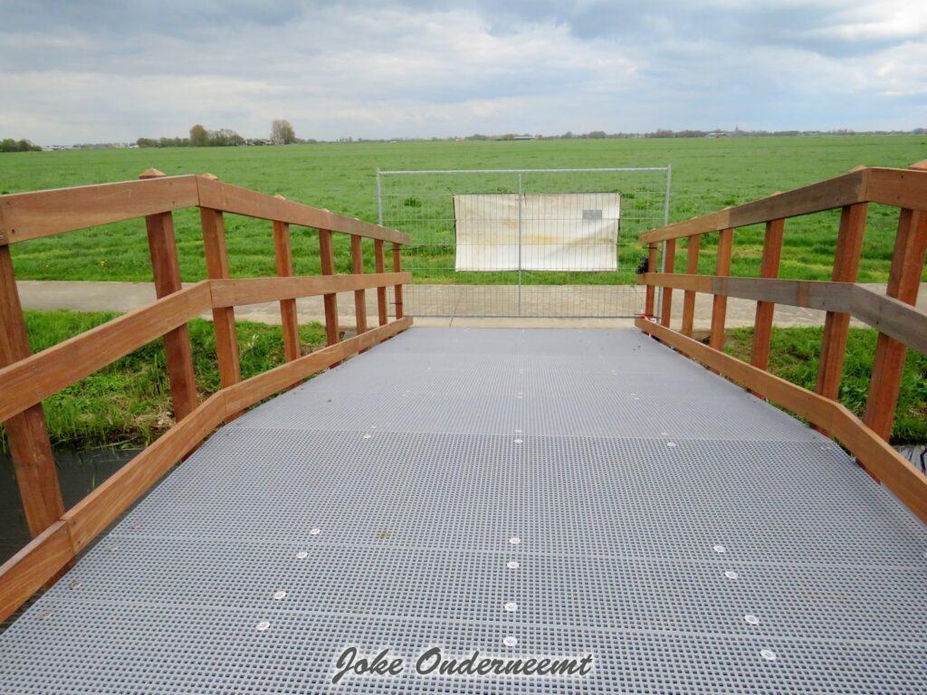 Aan de andere kant waar het fietspad al ligt zullen volgens zeggen wel borden geplaatst worden van afstappen , en kom je van de brug naar die kant dan moet je wel afstappen want ander zoals verkeersregelaar Alex zei ” dan lig je op de kop in wei “! Maar volgens hem is het logisch dat je loopt over zo’n brug …
