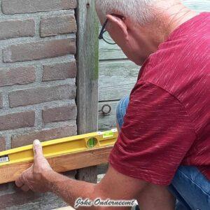 Er is hier echt helemaal niks waterterpas te vinden, maar die topper van mij heeft het toch maar mooi gefikst om die lelijke hoek achter tot wat leuks te maken