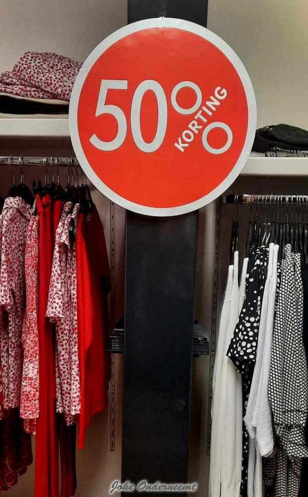 Toch viel vandaag op dat er in de Langestraat veel meer drukte was dan de laatste dagen, na enig speurwerk was de oorzaak bekend… BIJ JANSEN MODE ALLES VOOR 50% !