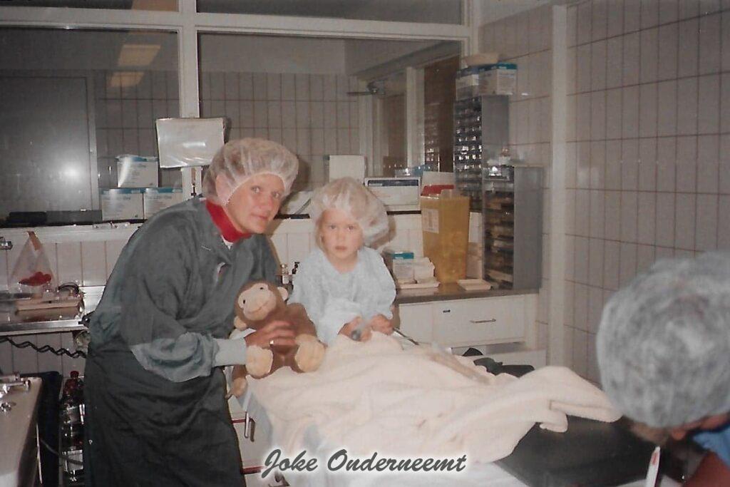 Haha ik vond deze foto’s , Miranda was 3 jaar en moest geopereerd aan haar ogen… zo te zien was ik 30 jaar geleden ook al druk met fotograferen tot ongeveer in de OK zo te zien.. per hoge uitzondering mocht ik een foto maken dat ze onder narcose ging, “maar mevrouw ze valt dan wel achterover hoor, dat u niet schrikt” en ik hoor mezelf nog zeggen “dat geeft niet jullie vangen haar wel op en heb ik toch een foto “