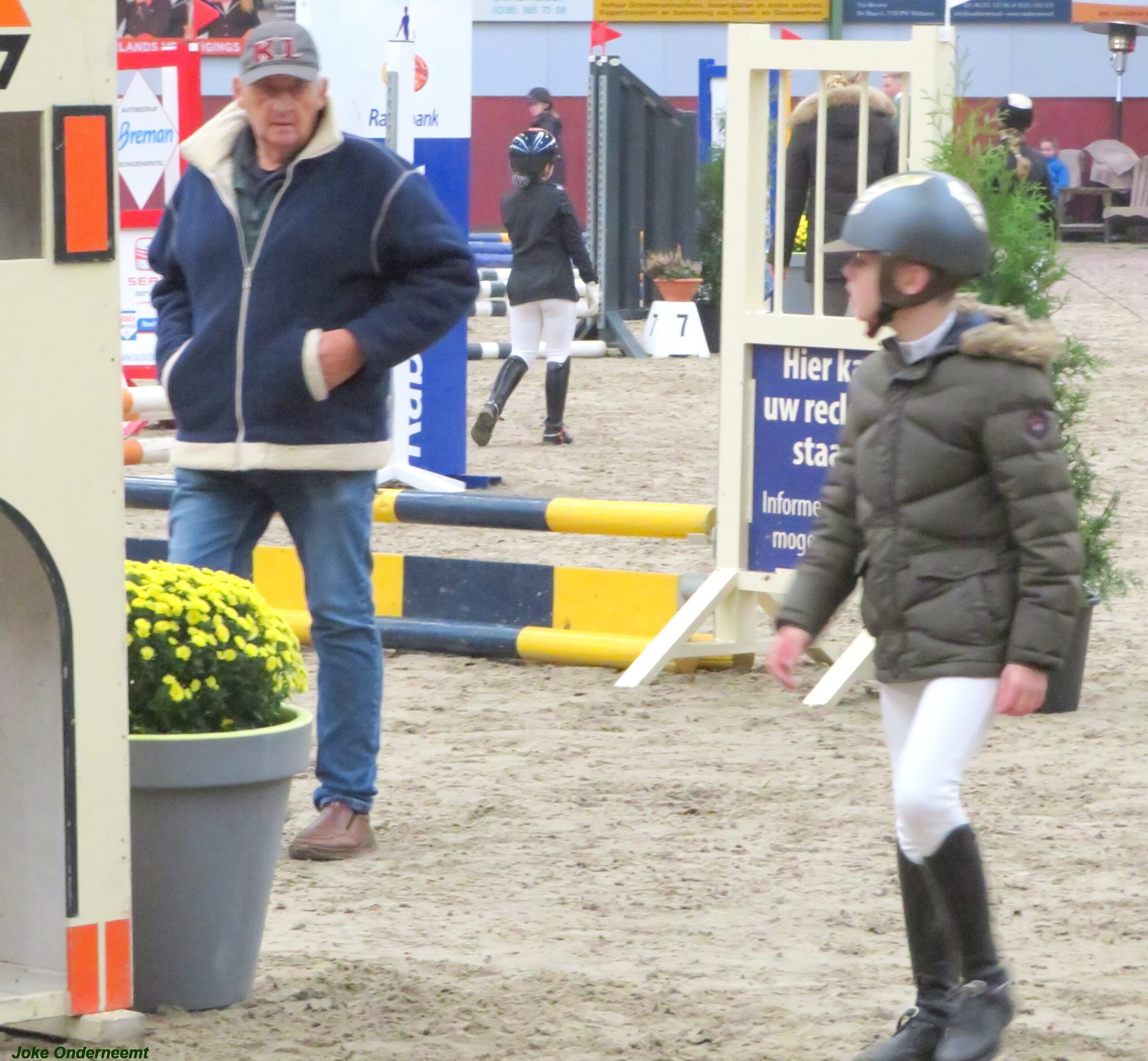 Ondertussen waren de ruiters die hierna aan de beurt waren het parcour aan het “verkennen”, en dat is zeker nodig want ik kan aan de kant de volgorde nog niet onthouden.. dus dat heen en weer geloop van de ruiters voor de tijd is zeer zeker nodig !