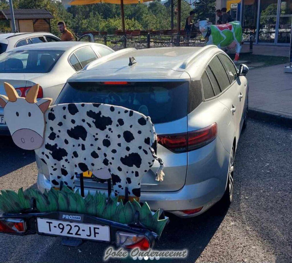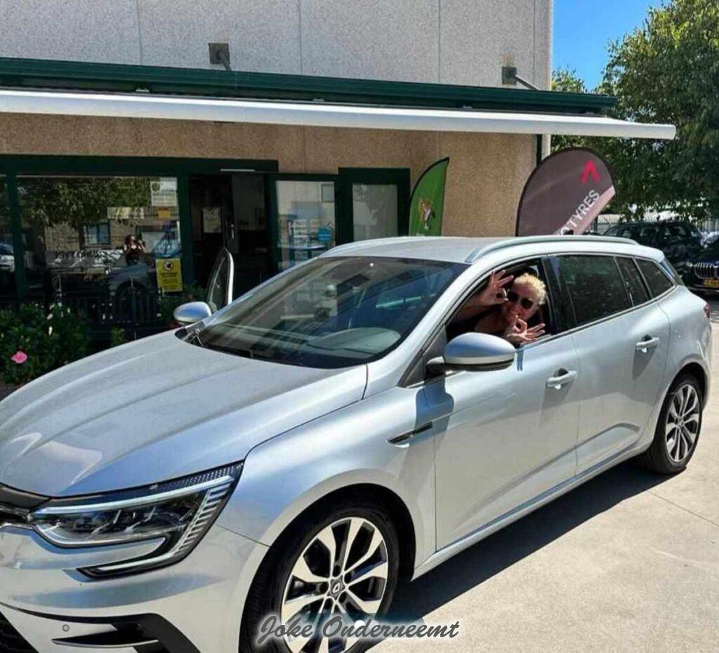 Een mooie Renault hebben ze kunnen krijgen, en die lijkt volgens mij wel op de “gouden koets ” tussen al die rammelbakken, maar mag de pret niet drukken er zat een trekhaak aan dus de echte “melkkoe” kon weer mee en de pakken gingen weer aan bij de dames.