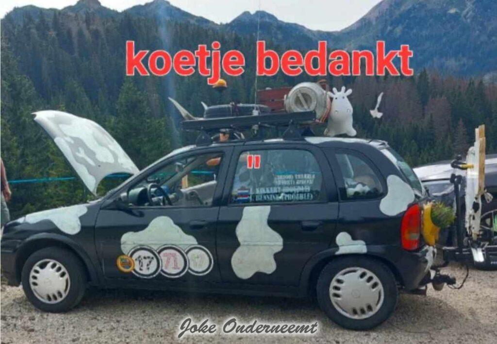 Zo hadden ze toch weer een beetje koe gevoel . Nadat ze de jongens in de garage hadden bedankt voor hun hulp en hen blij hadden gemaakt met een pak “koetjes repen” was het gas op de plank