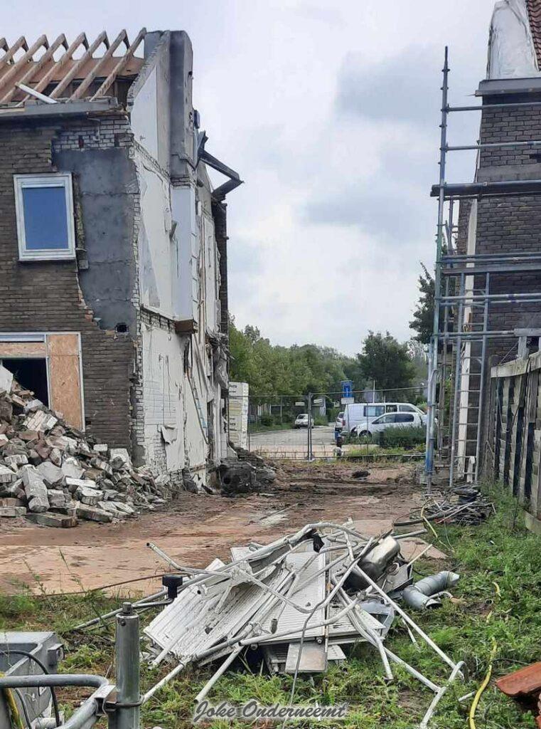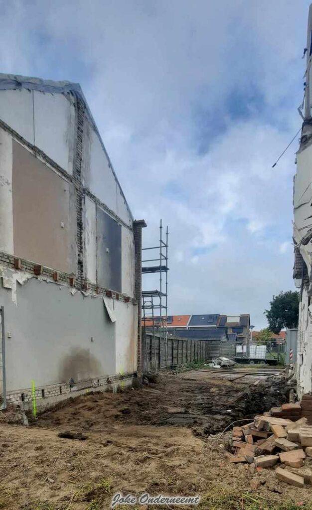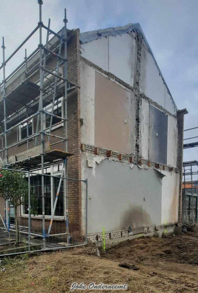 De zijgevel van nummer 18 wordt netjes afgewerkt, en zo kan de sloop doorgaan van de andere woningen uit de rij . Op deze manier door deze eerst “lost te koppelen” hopen ze de geluidsoverlast van de sloop voor nummer 18 & 20 wat te beperken.