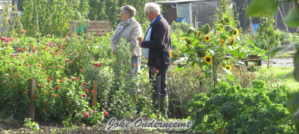 Keurig verzorgde tuinen en huisjes en kassen.. veel soorten groenten en enorm veel bloemen wat reuze gezellig staat, ook mochten er bloemen mee genomen worden voor niks en tijdens een heerlijk bakje koffie werd er veel over de akkers gepraat . Ook was de Imker er kon je producten kopen.