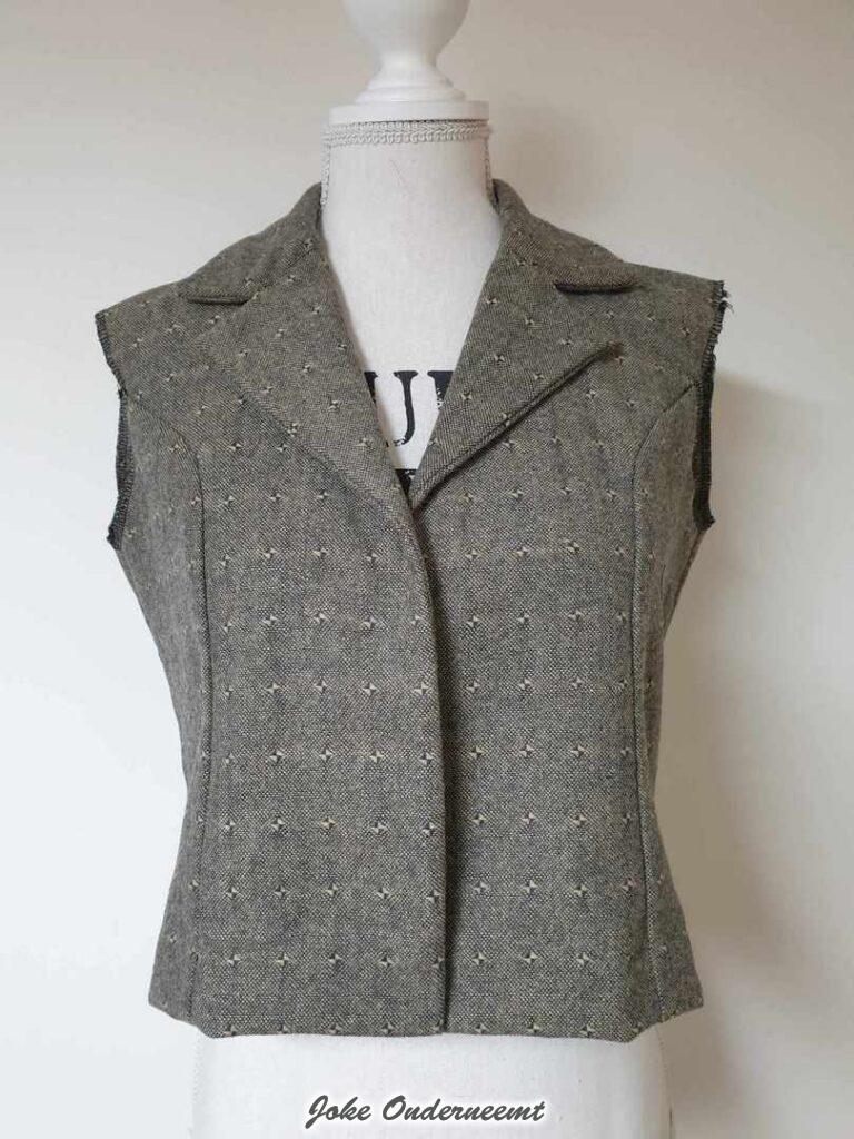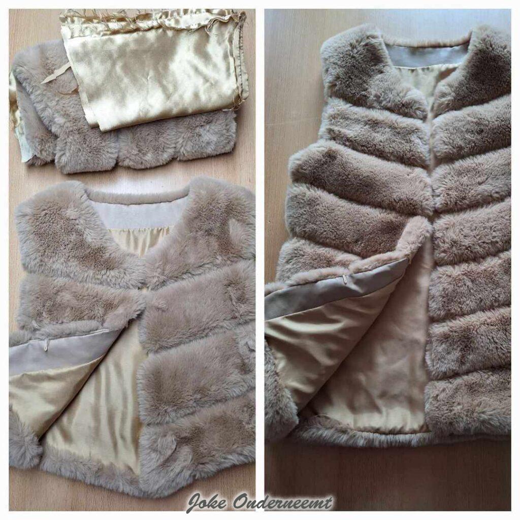 Soms worden kledingstukken niet meer gedragen, omdat het achteraf toch wat te lang is en niet zo mooi stond, dus kreeg het een plaats in de kledingkast. Hartstikke zonde want het was een ontzettend leuk giletje…beetje furry en leer en aan de binnenkant voering! Daar heb ik een kort model van gemaakt en nu wordt het wel gedragen” Zo zie je maar, gooi niet zo gauw kleding weg…er valt altijd wel een mouw aan te passen!