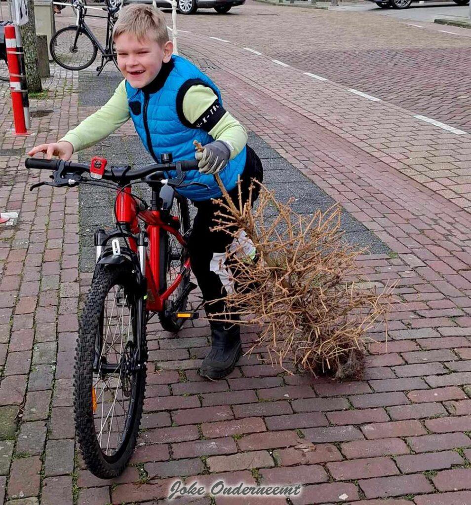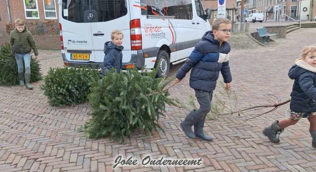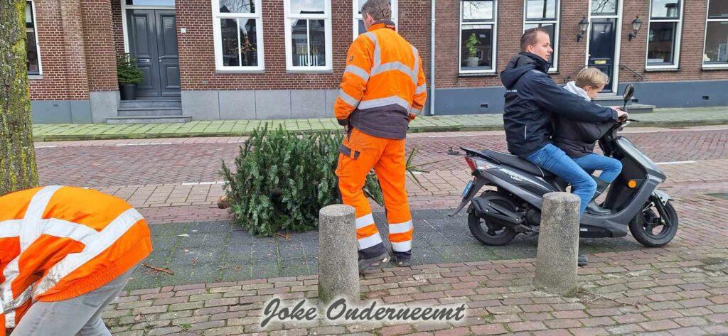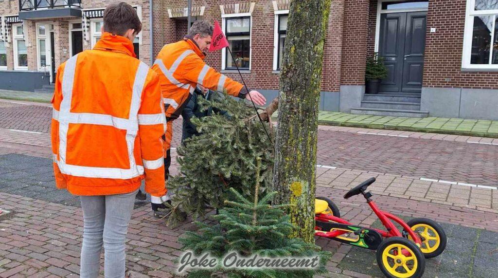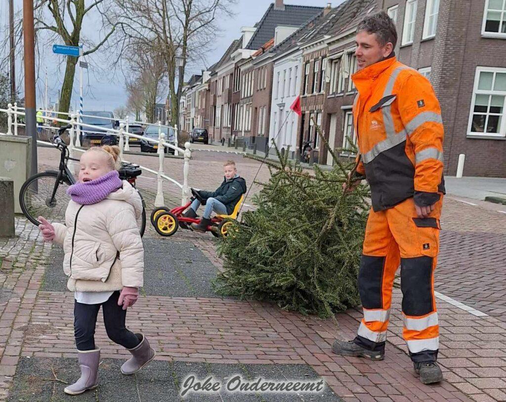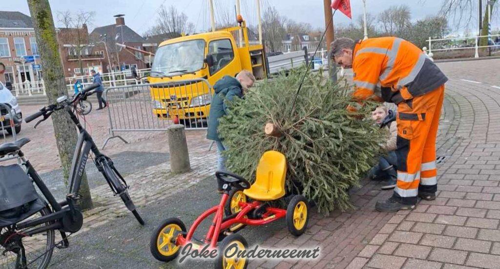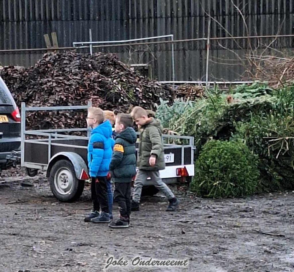Het was weer gezellig met de kerstboom in huis , en ze zagen er nog heel mooi uit maar….. “blij dat die de deur uit kon” zei een mevrouw. En zo konden ze vanmiddag worden ingeleverd op het Havenplein, waarna ze zullen worden versnipperd.