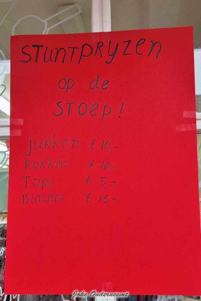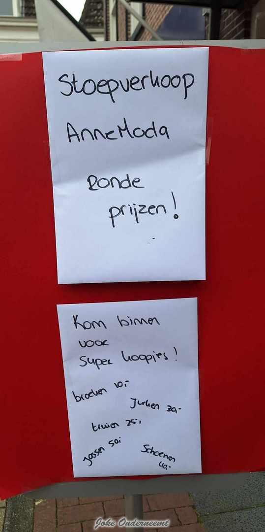 AnneModa zet goedkope aanbiedingen op de stoepverkoop Joke Veldman Geplaatst op 8 februari 2024 Binnen bij de IJsko had AnneModa al opruiming neer gezet En nu staan de rekjes met de goedkoopste artikelen uit de kelder buiten… Sla je slag nu het mag ! We zien u graag ook zaterdag op de stoepverkoop. AnneModa – Kruisstraat – Genemuiden