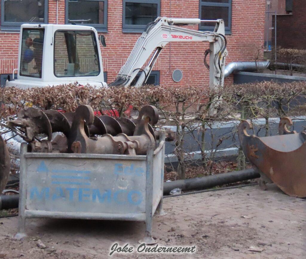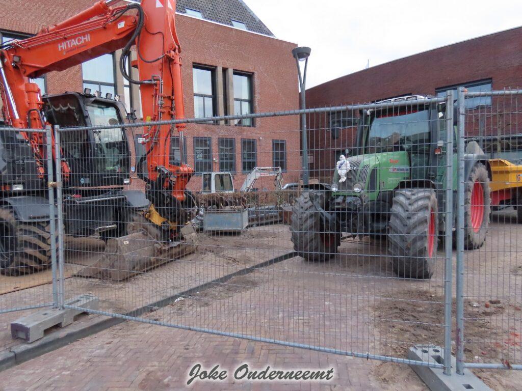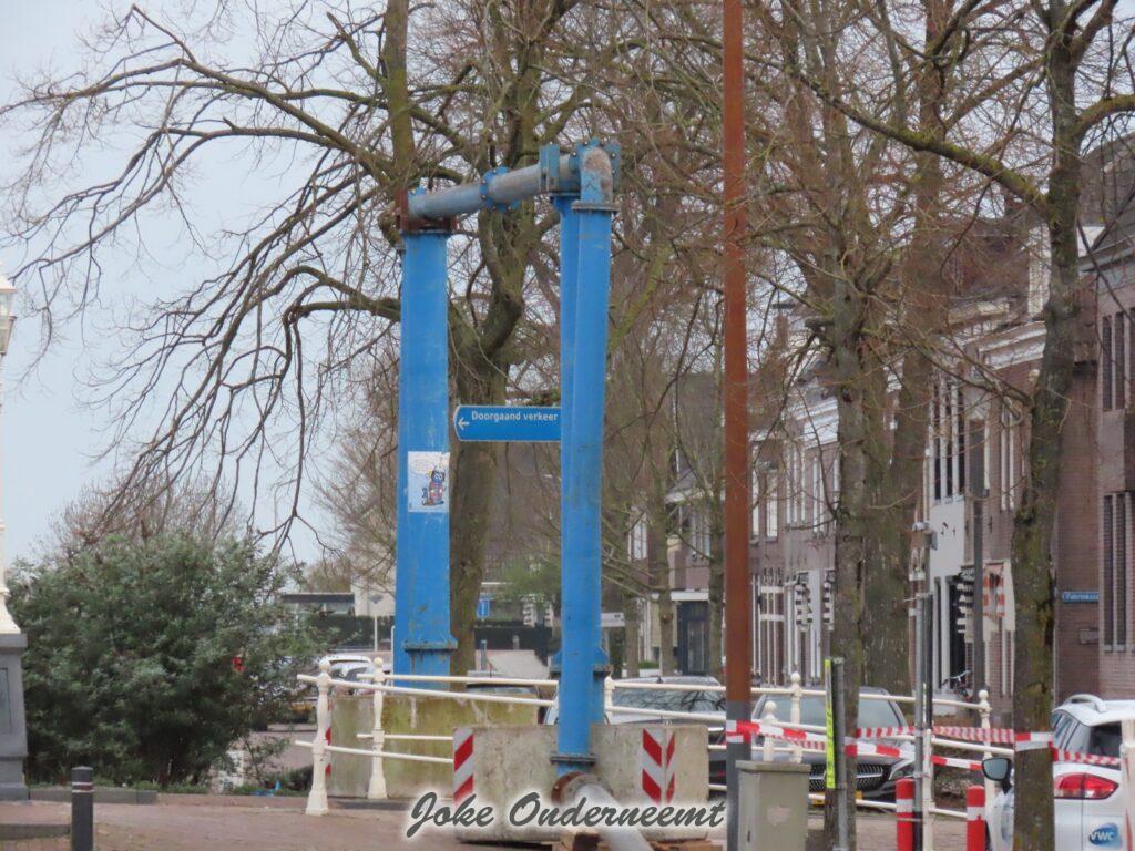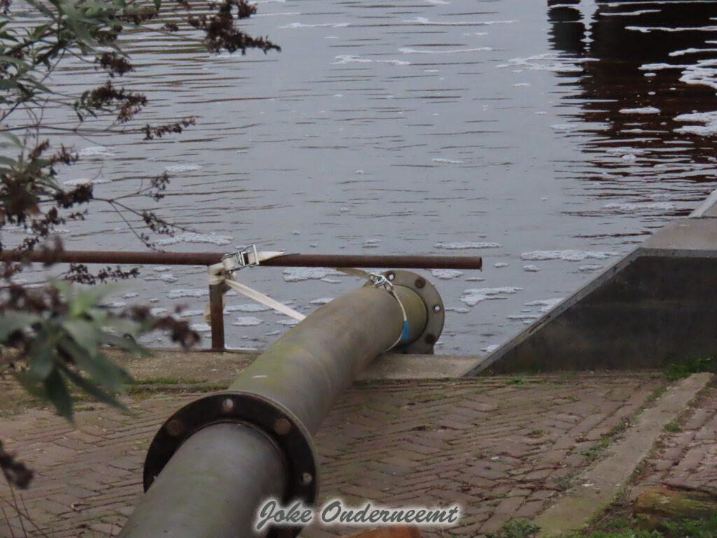 Maar nu alles binnen bijna gereed is moet er buiten nog wel wat gebeuren zag ik , een mooi “bouwwerk” van meters lange dikke buizen is vanaf de achterkant van ’t Olde Staduus via het Havenplein gelegd en komt uit in de Binnenhaven.