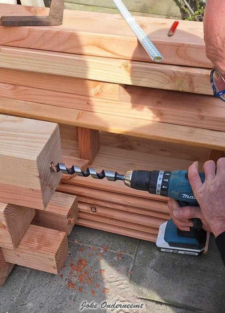 We kregen alles netjes thuisbezorgd op maat en zo konden we aan de slag met bouwen. Zoon Christiaan kwam helpen en zo werd het de eerste dag al ongeveer in elkaar gezet !