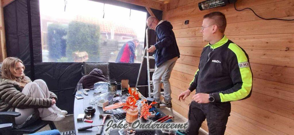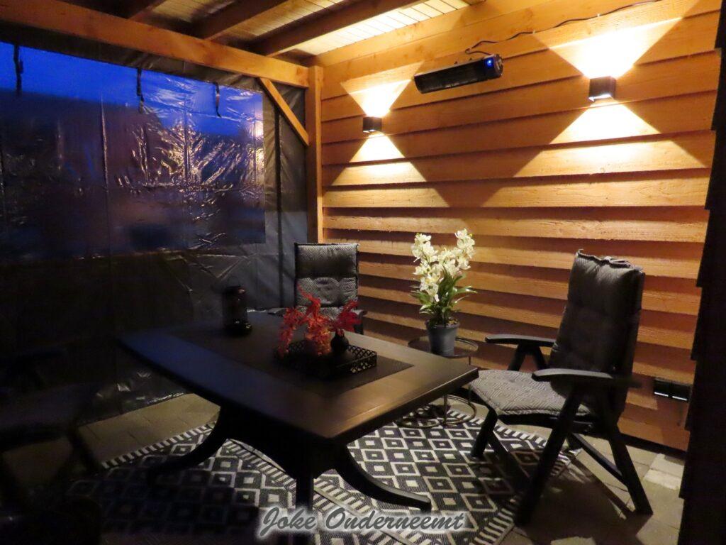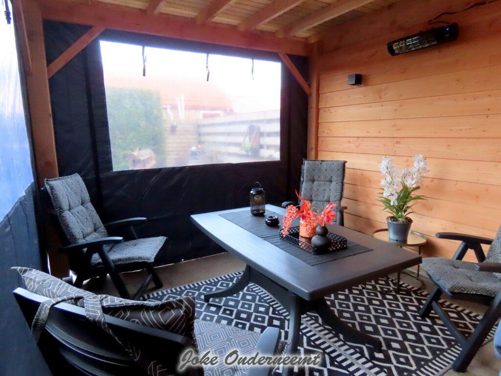 De PVC zijkanten hebben we eraan gemaakt echt super gaaf en sterk, het middelste gedeelte met “het raam” kun je helemaal oprollen zodat het helemaal open is . En nu helemaal dicht en de heater aan .. Wat zijn we hier ontzettend blij mee !!