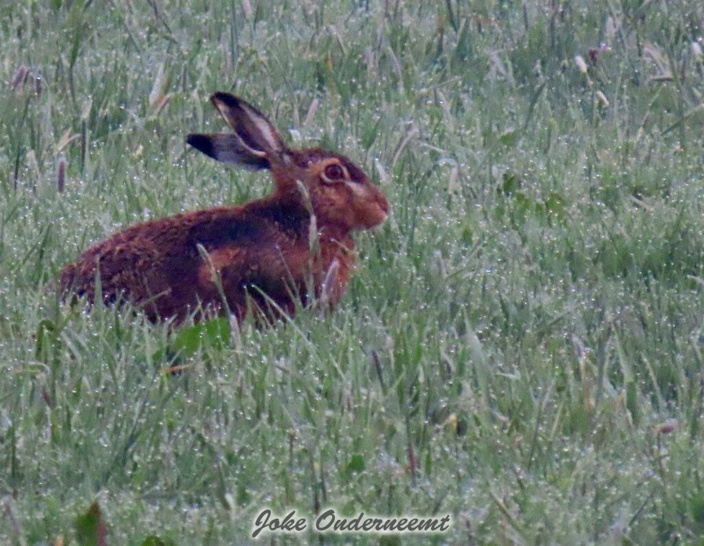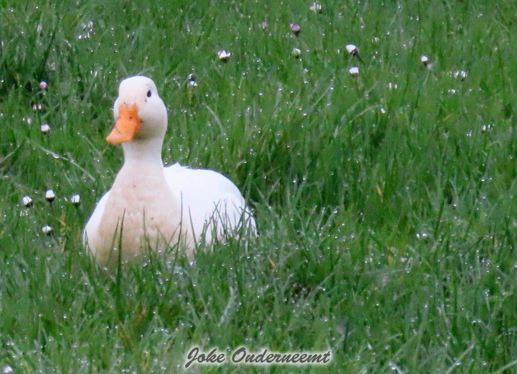 Helaas geen blauwe lucht maar toch wel mooie dingen gezien.. de witte eend en het haasje leuk in de dauwdruppels in het het gras.. kleine details maar maakt de foto net wat leuker.