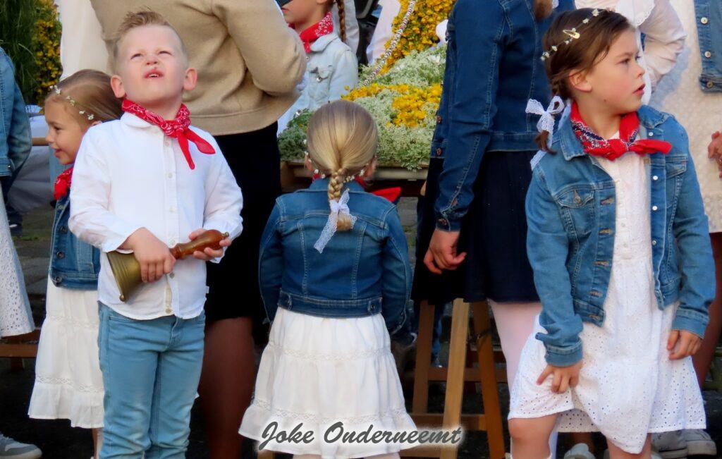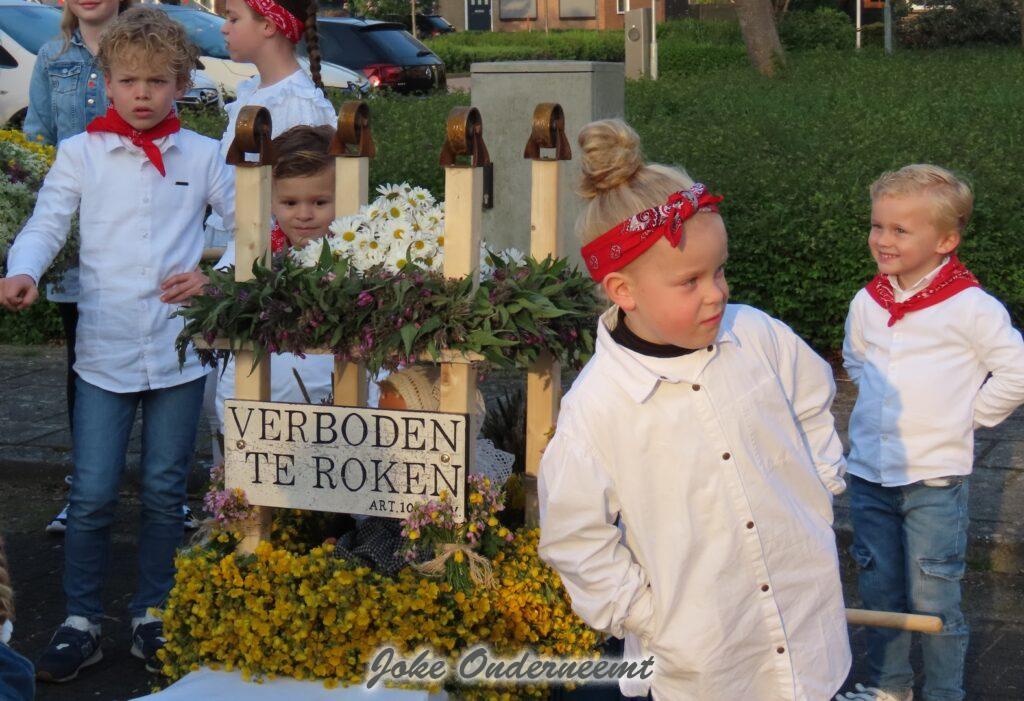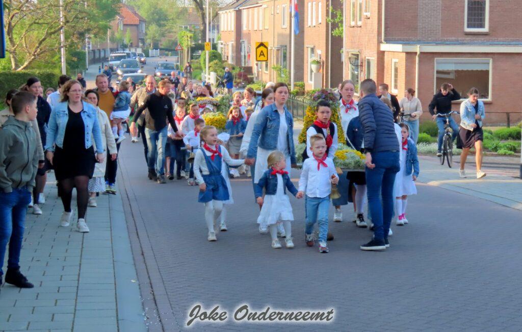 Prachtig weer en heel veel kinderen de uit volle borst zongen. Er was weer veel creatief werk van gemaakt en duizenden bloemen geplukt !