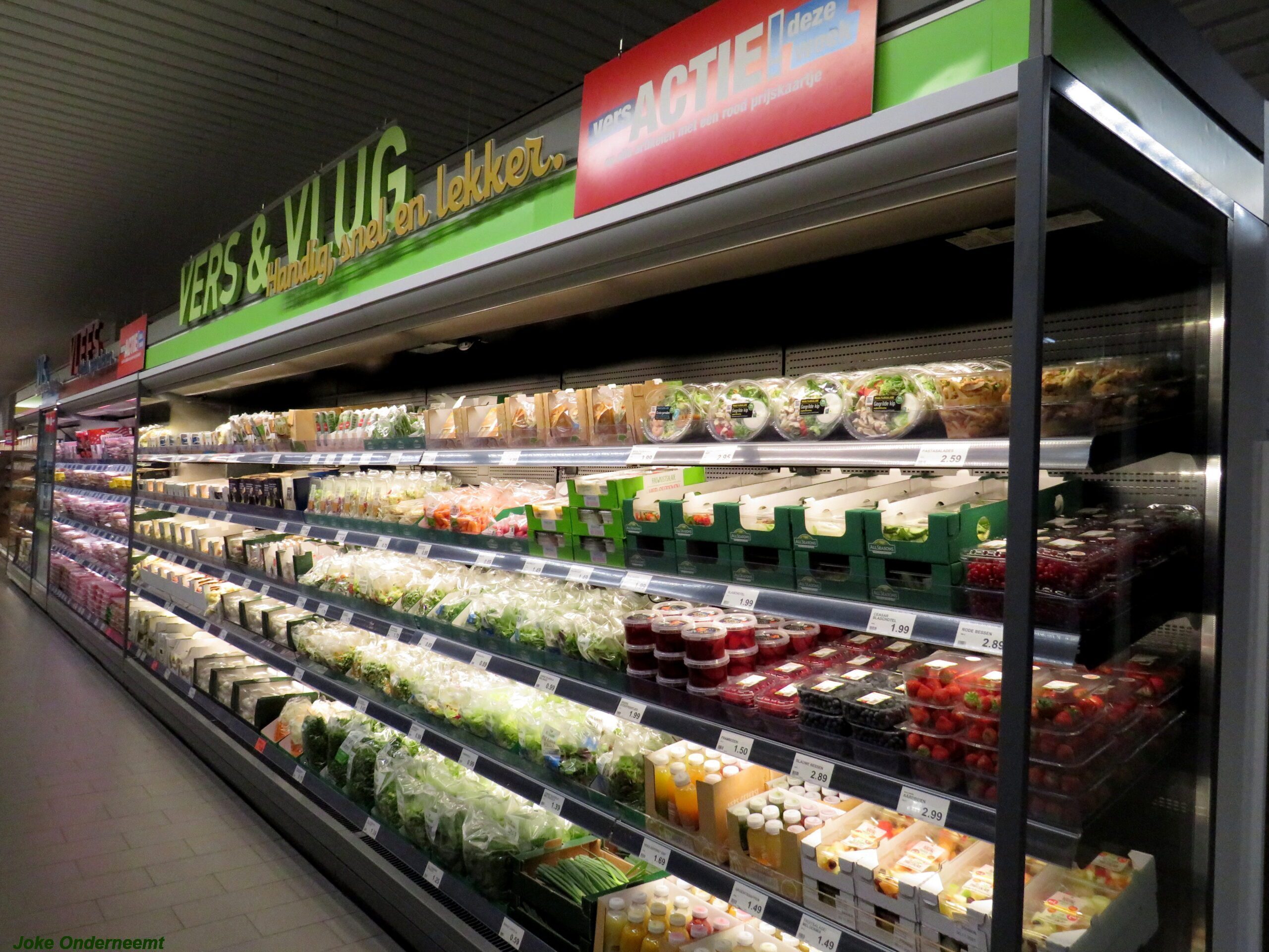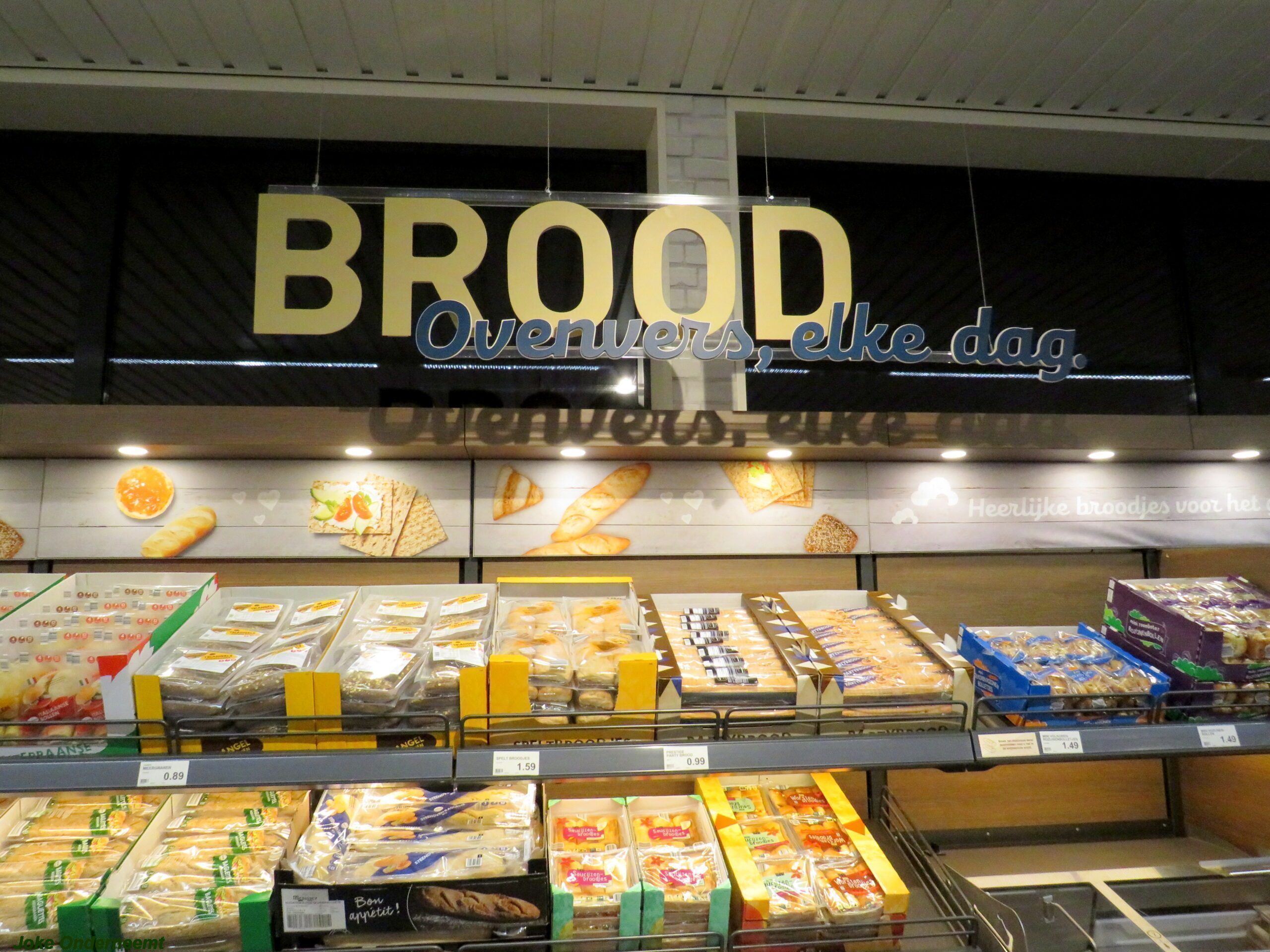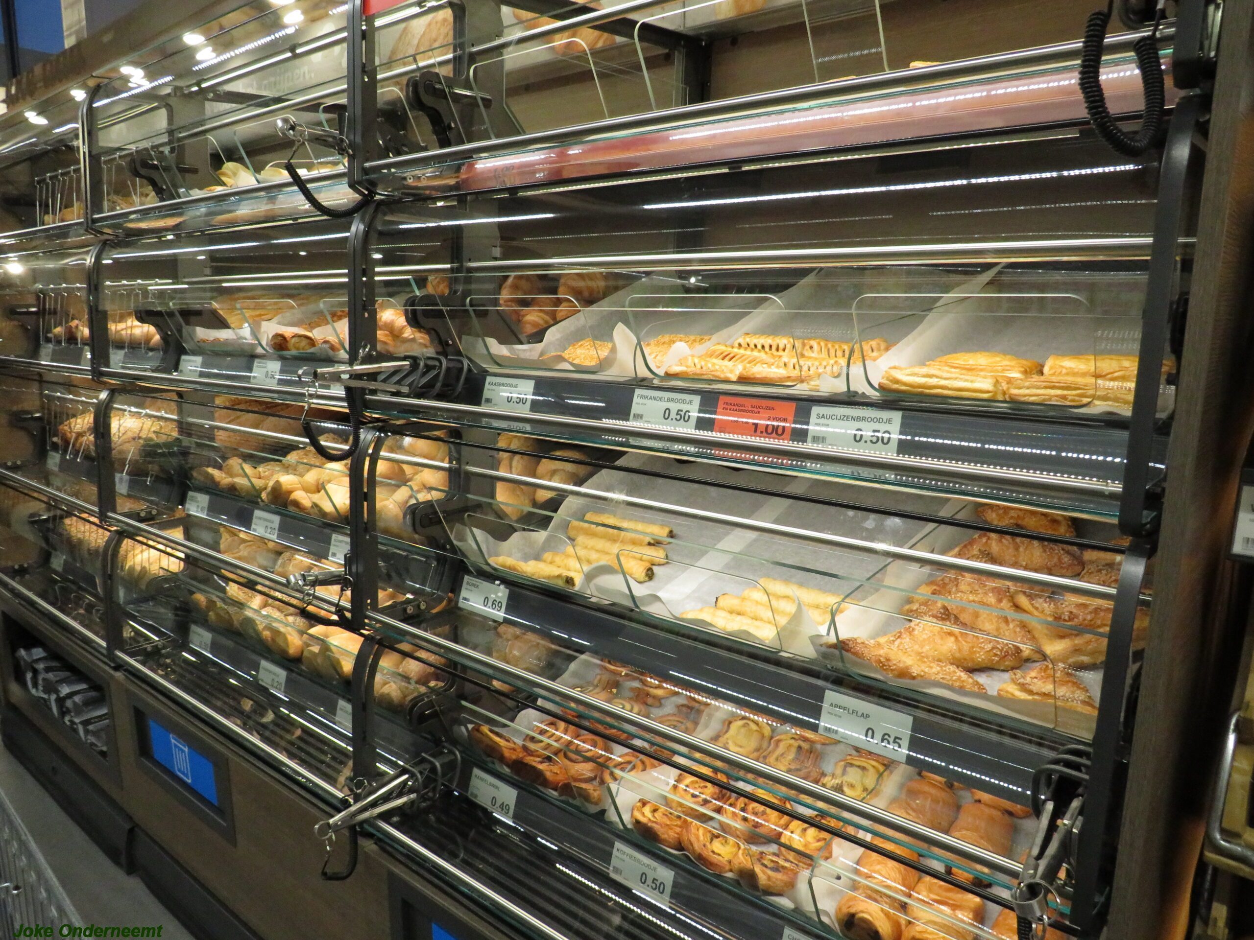 Dan begint het met het versplein van groete en fruit ,om vervolgens de geur te volgen en komt je vanzelf bij de vele soorten heerlijk vers brood , kaasbroodjes etc… nou ja zo kom je overal langst dus vandaag gaat u vast wel zelf naar de ALDI en kunt het rustig bekijken. Nou ja rustig was het bepaald niet , een lange rij mensen stonden er al vol ongeduld te wachten.