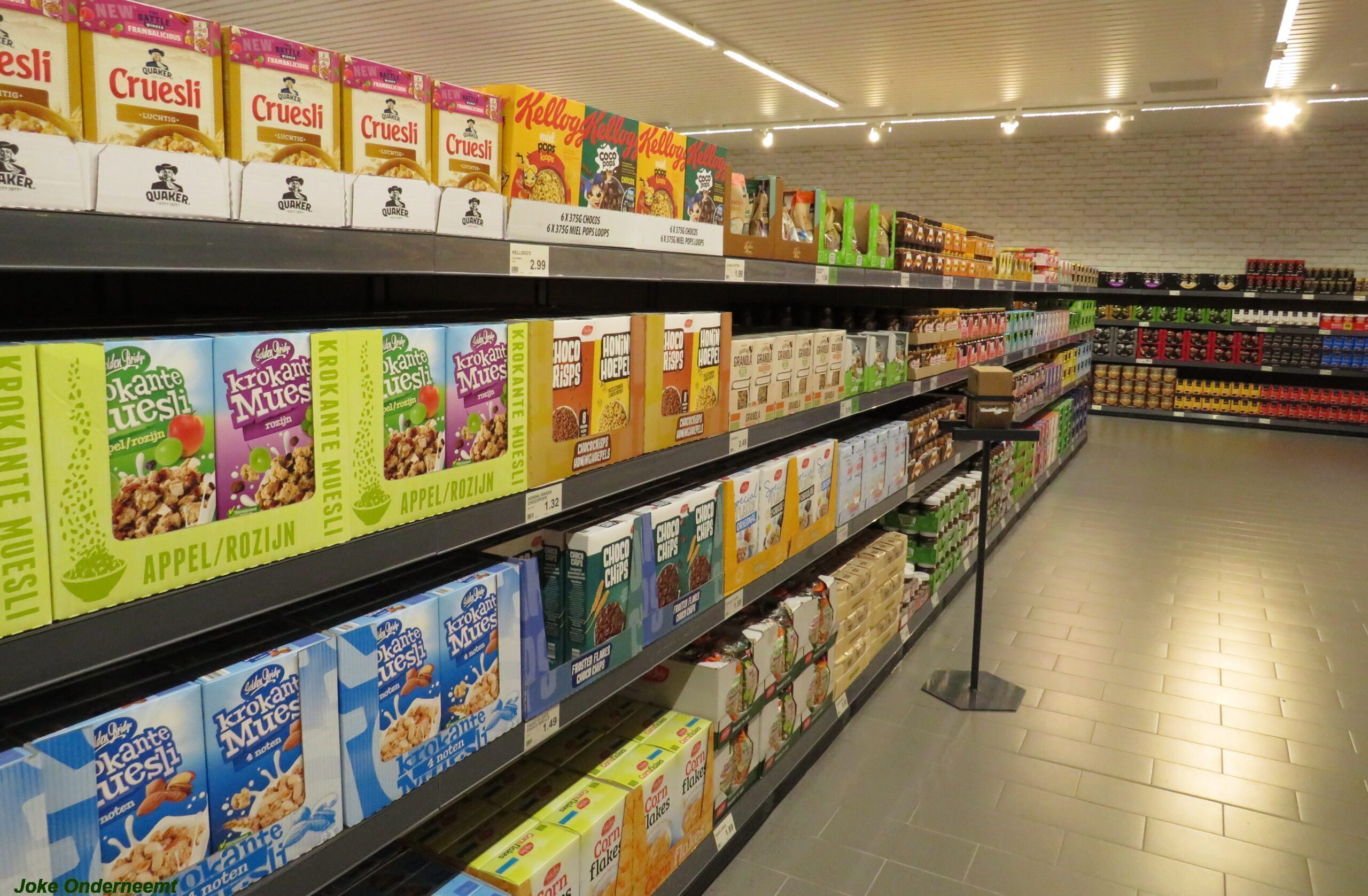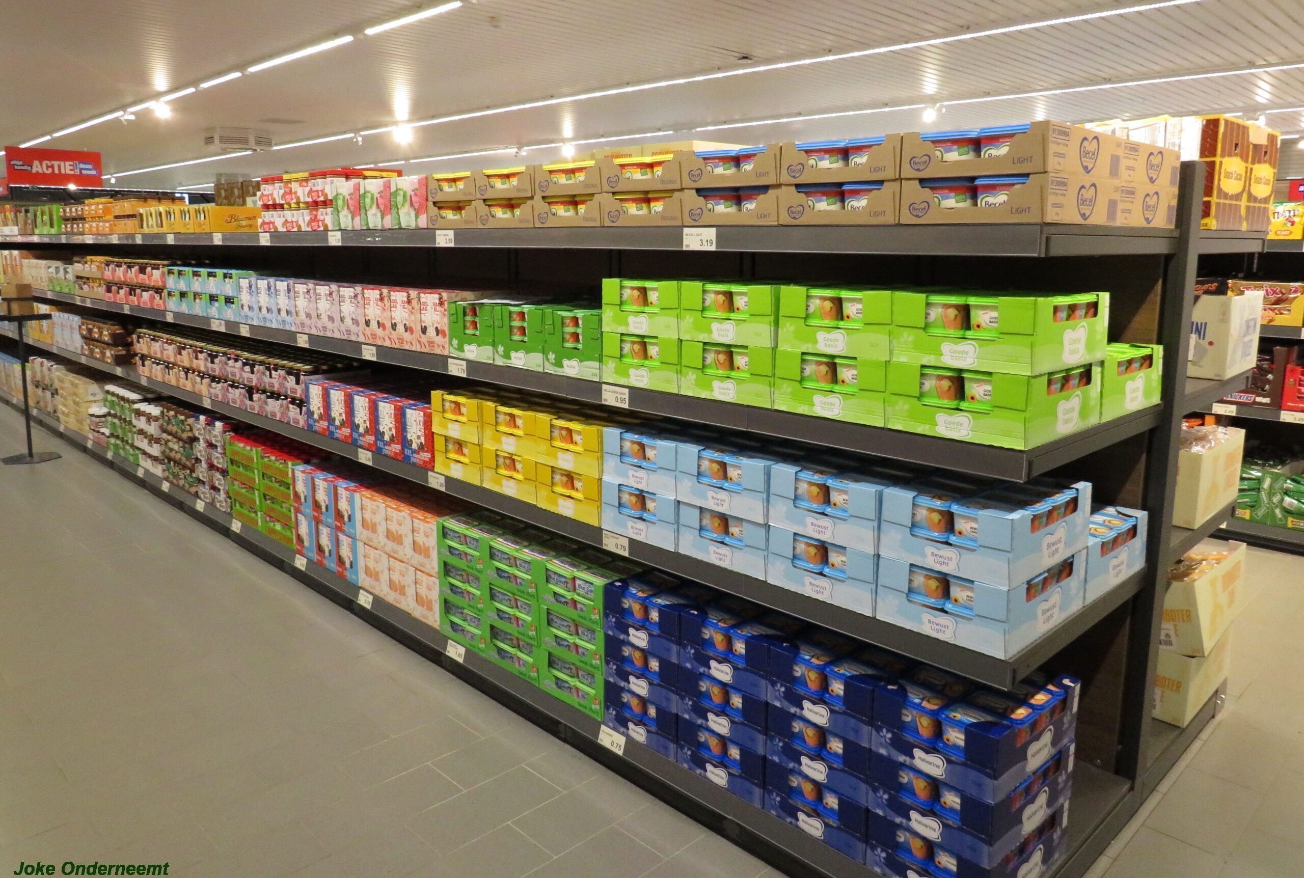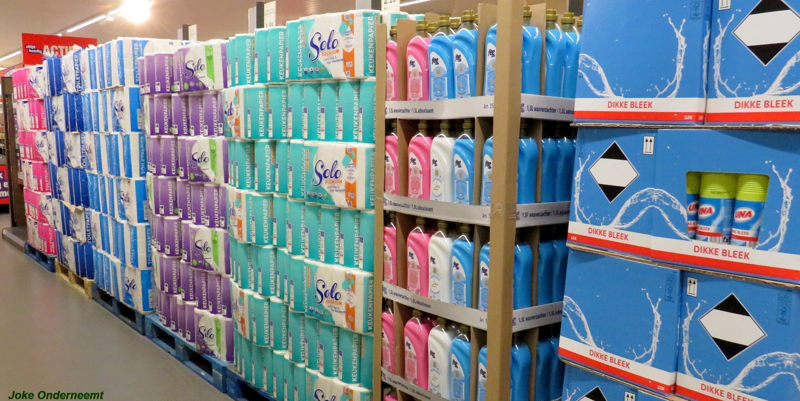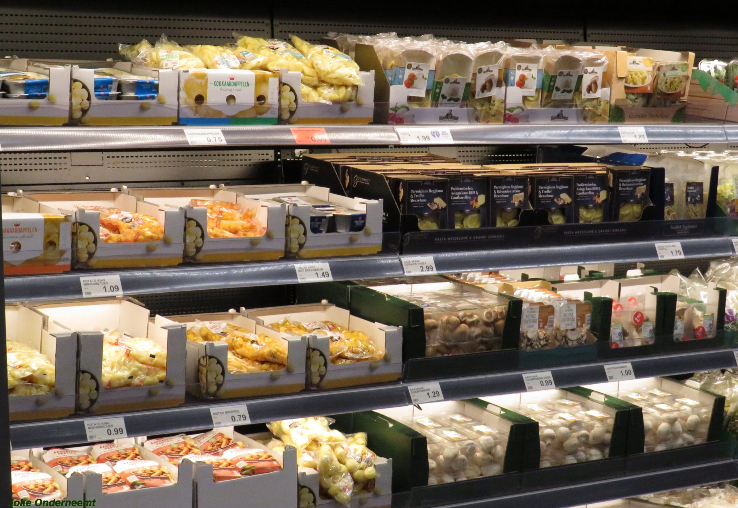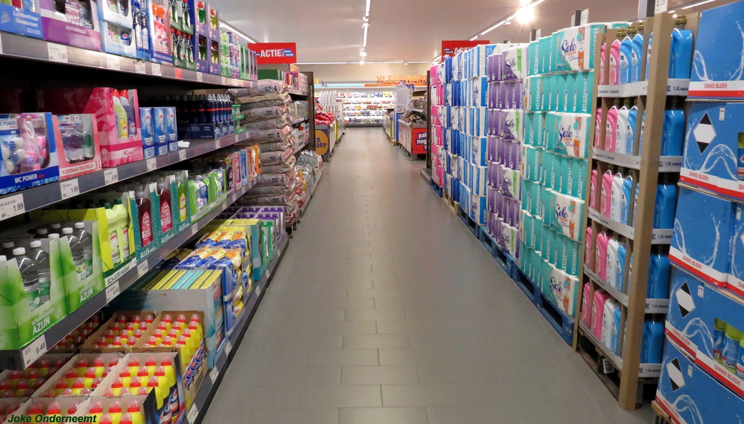 Gisteravond mocht ik vast wat foto’s maken dat gaf een mooi overzicht in de zaak met de prachtige brede paden. Bij binnenkomst kun je meteen rechtsaf de lege flessen, lampen en batterijen inleveren , wel handig ben je die vast kwijt uit je winkelwagentje