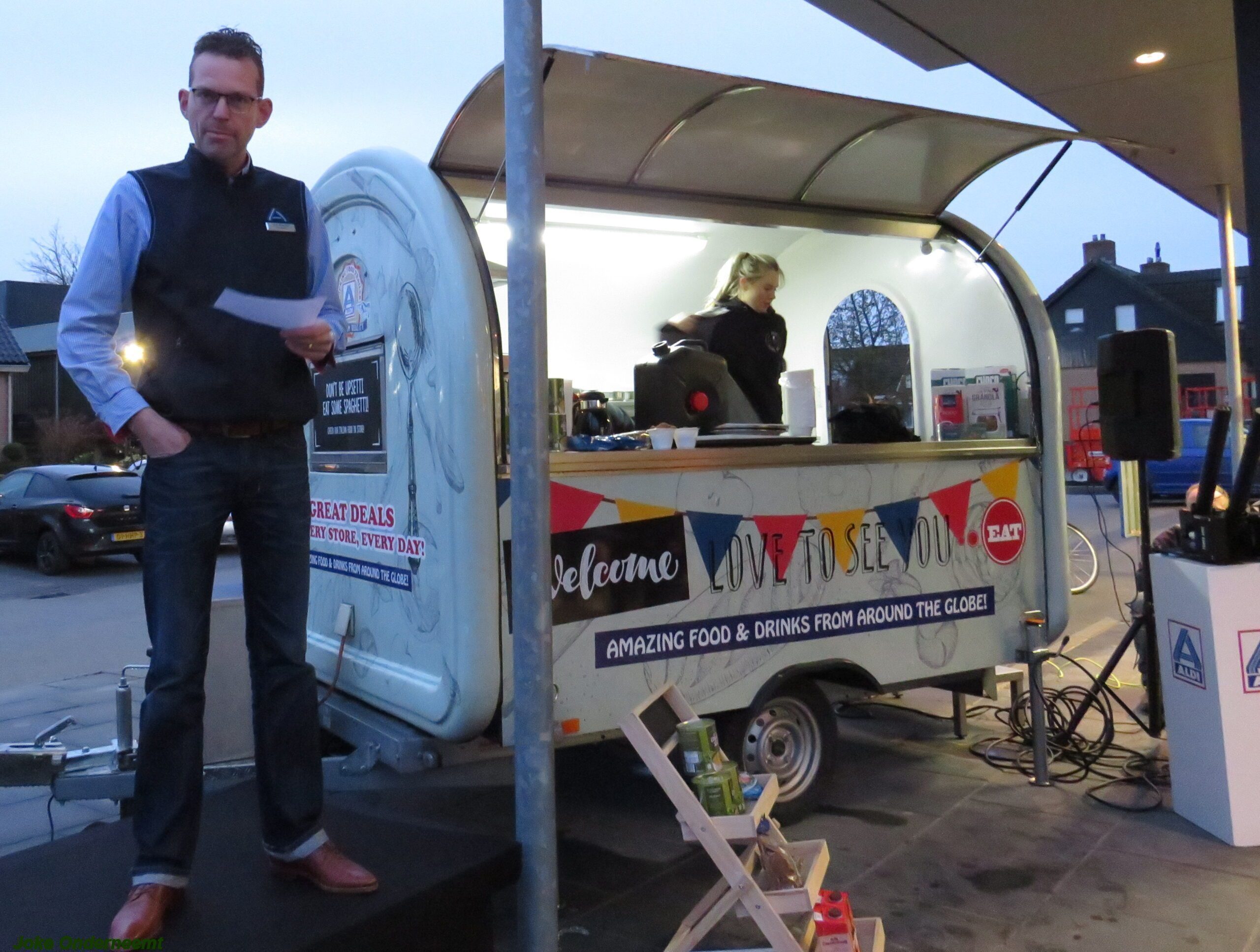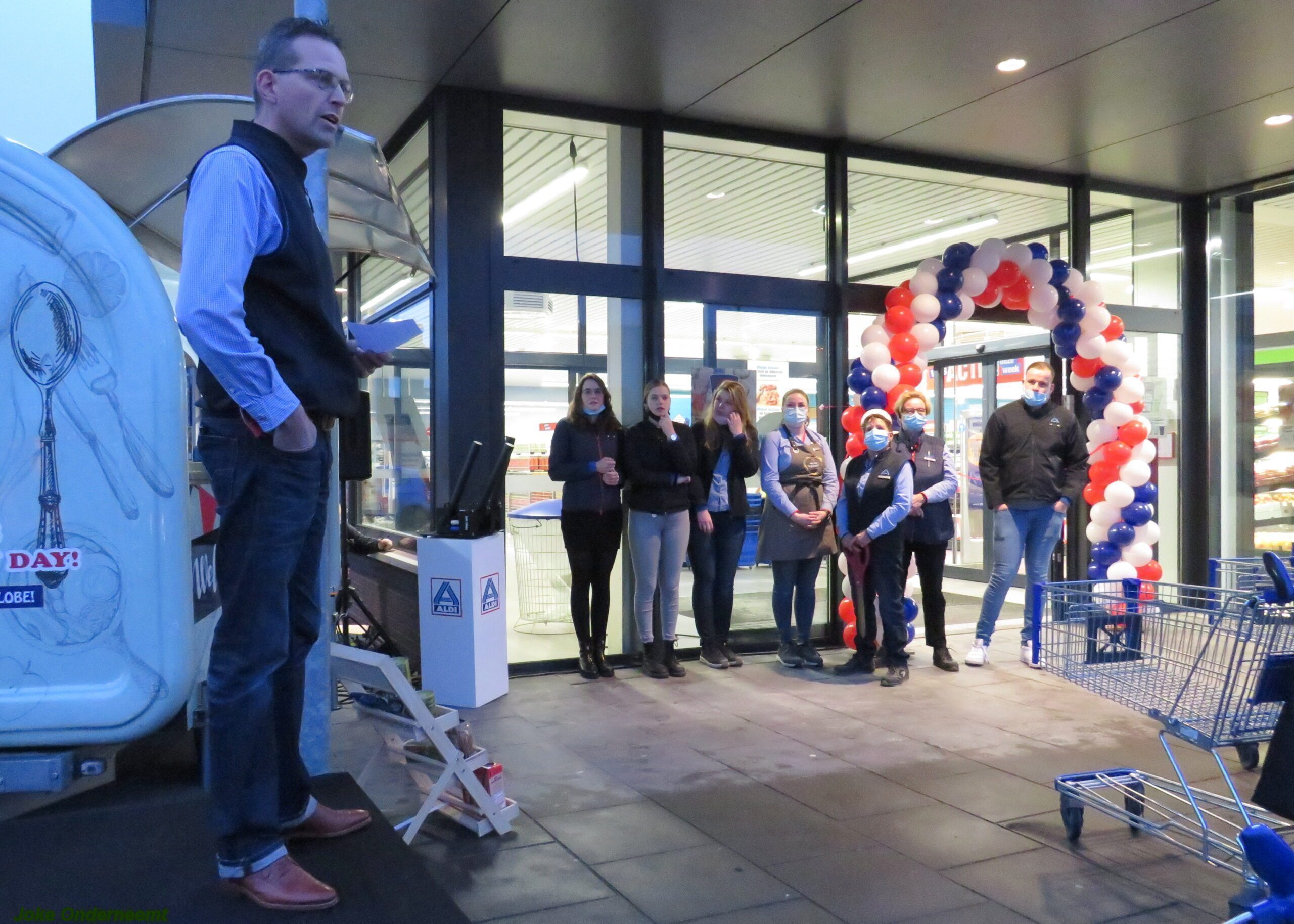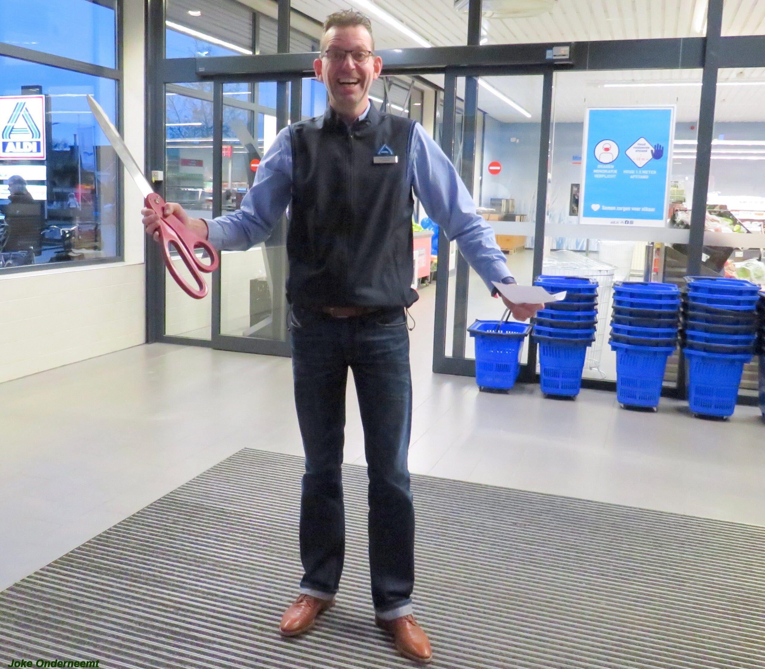 Om 8.00 uur ging de zaak open alvorens de nieuwe filiaalmaneger Erik Wessels even een korte toespraak hield. Hij was blij en volgens mij ook super trots op “onze” mooie nieuwe ALDI zoals hij zei. Er is 200 vierkante meter bijgekomen en nu is er dus een totaal winkel oppervlakte van 1000 vierkante meter !