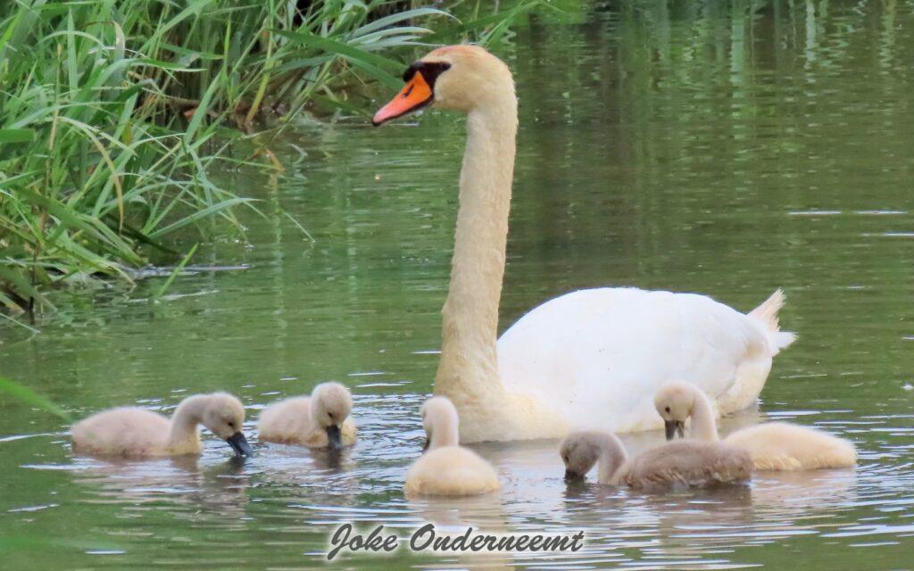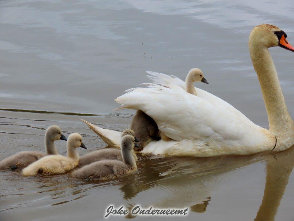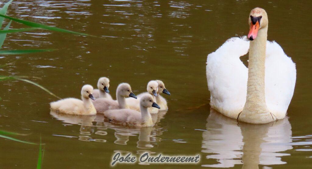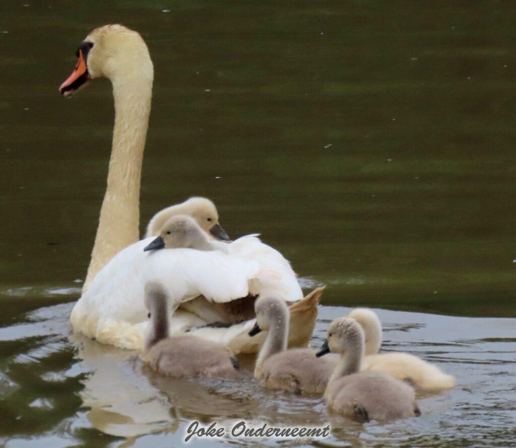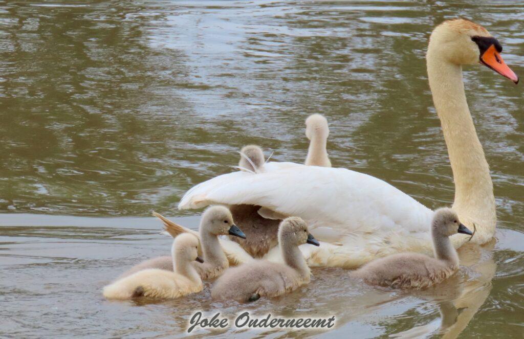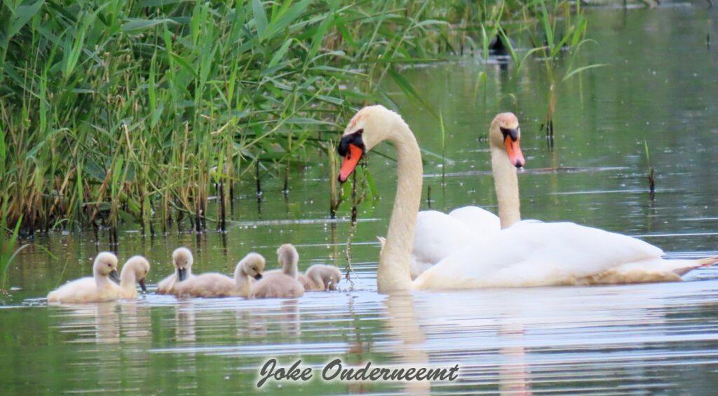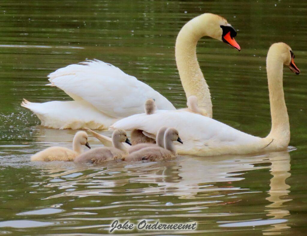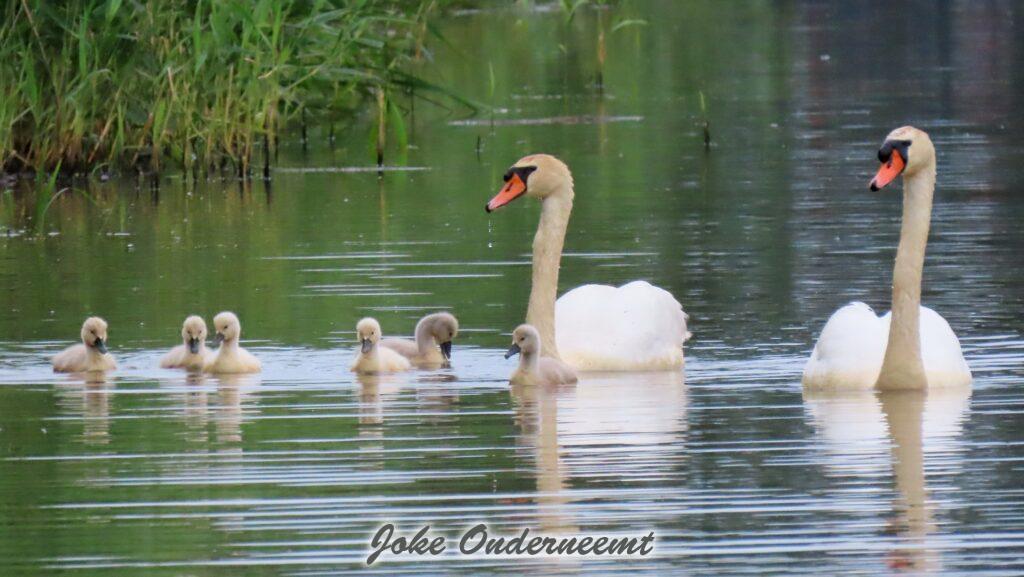 Hier wordt je toch op slag verliefd op een zwanen koppel met 6 jongen in de Bergingsvijver.