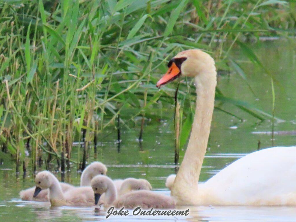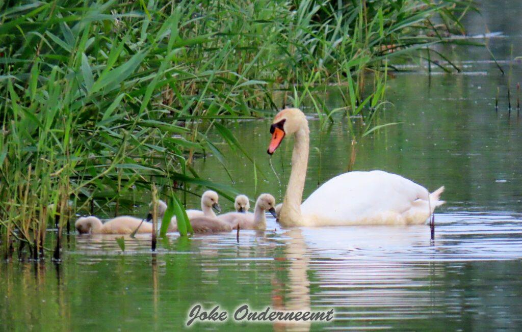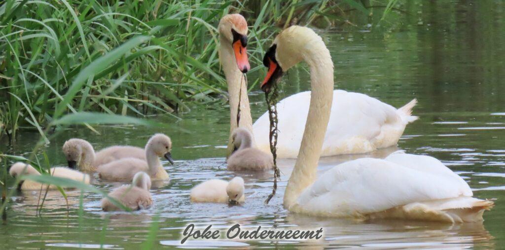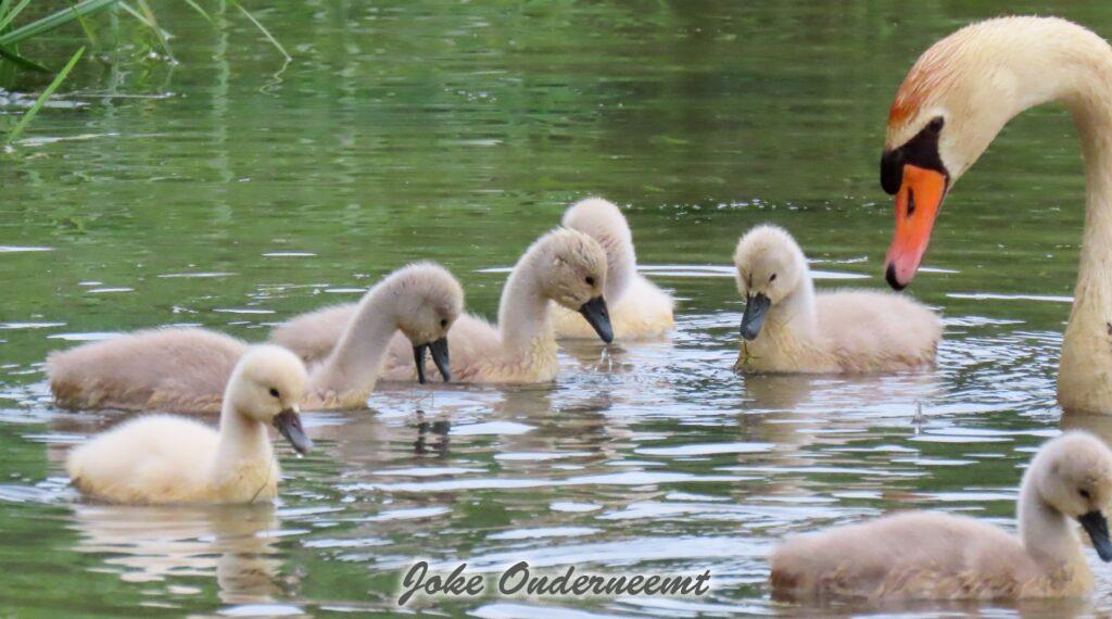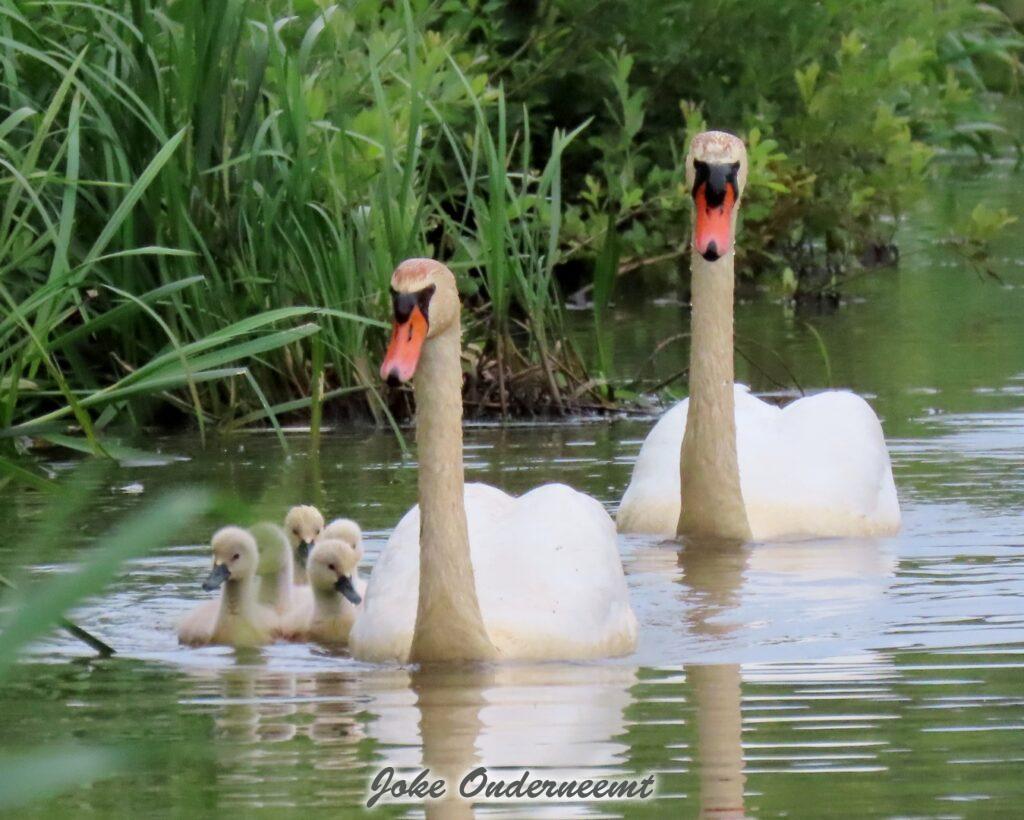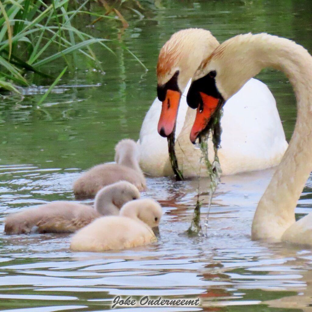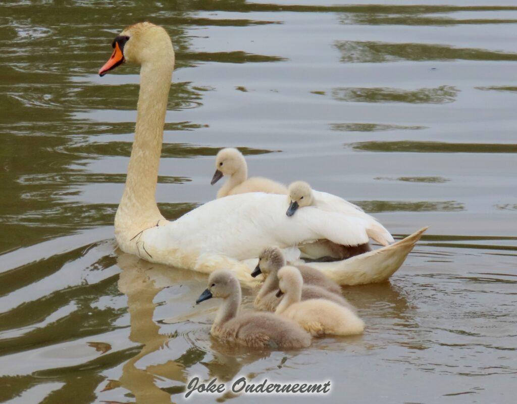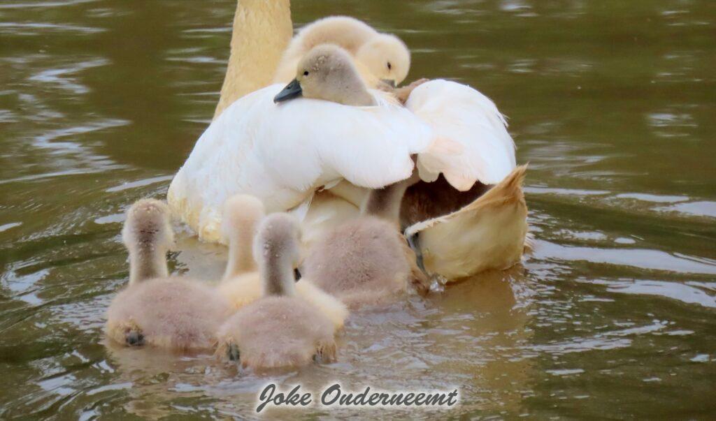 Hier wordt je toch op slag verliefd op een zwanen koppel met 6 jongen in de Bergingsvijver.