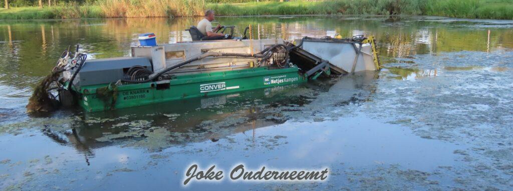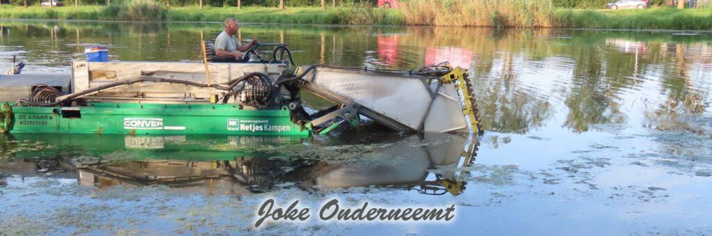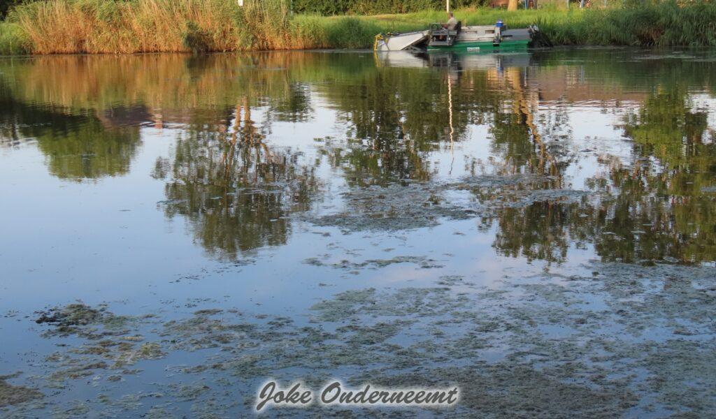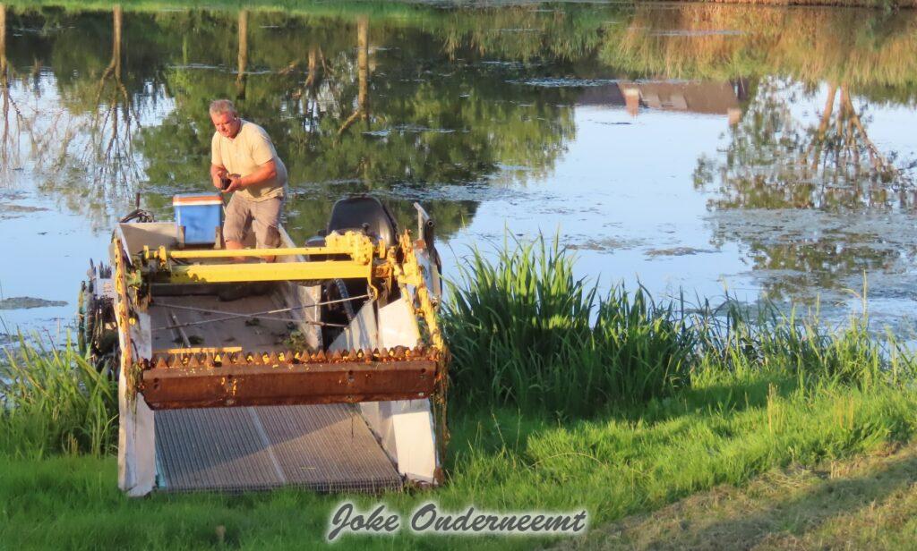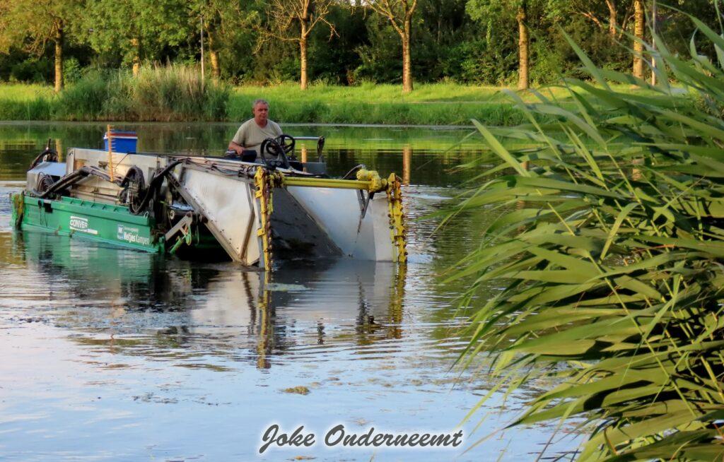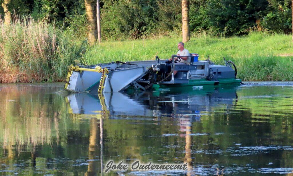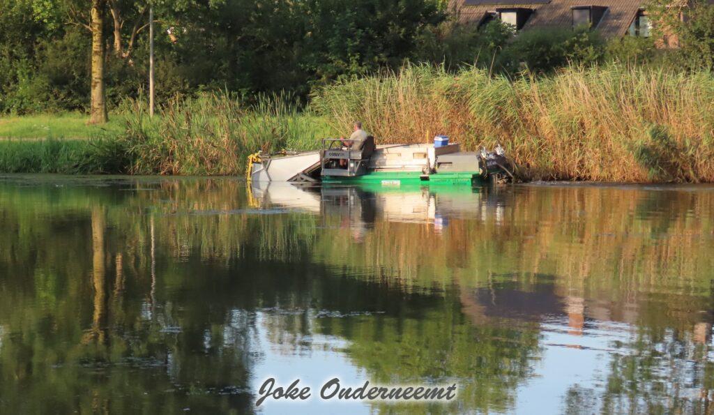 In opdracht van de Gemeente Zwartewaterland & en het Drents Overijssels Waterschap was deze man al zeer vroeg begonnen vanmorgen om de Bergingsvijver weer schoon te krijgen.