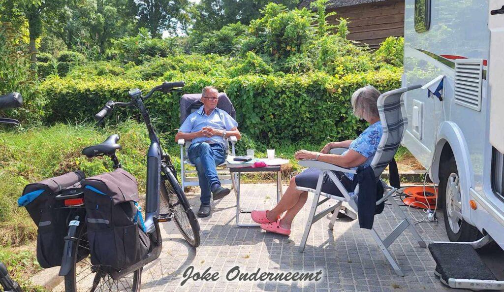 Daar zat een echtpaar heerlijk op hun klapstoeltjes te genieten van hun lunch. Het zag er zo gezellig en vredig uit daar in de stilte dat ik het toch niet kon laten om even een praatje te maken…..