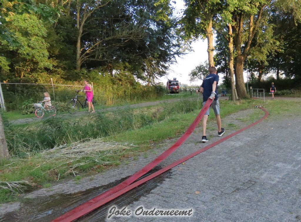 De Brandweer had voor verkoeling gezorgd en daar werd dankbaar gebruik van gemaakt met heel veel plezier!