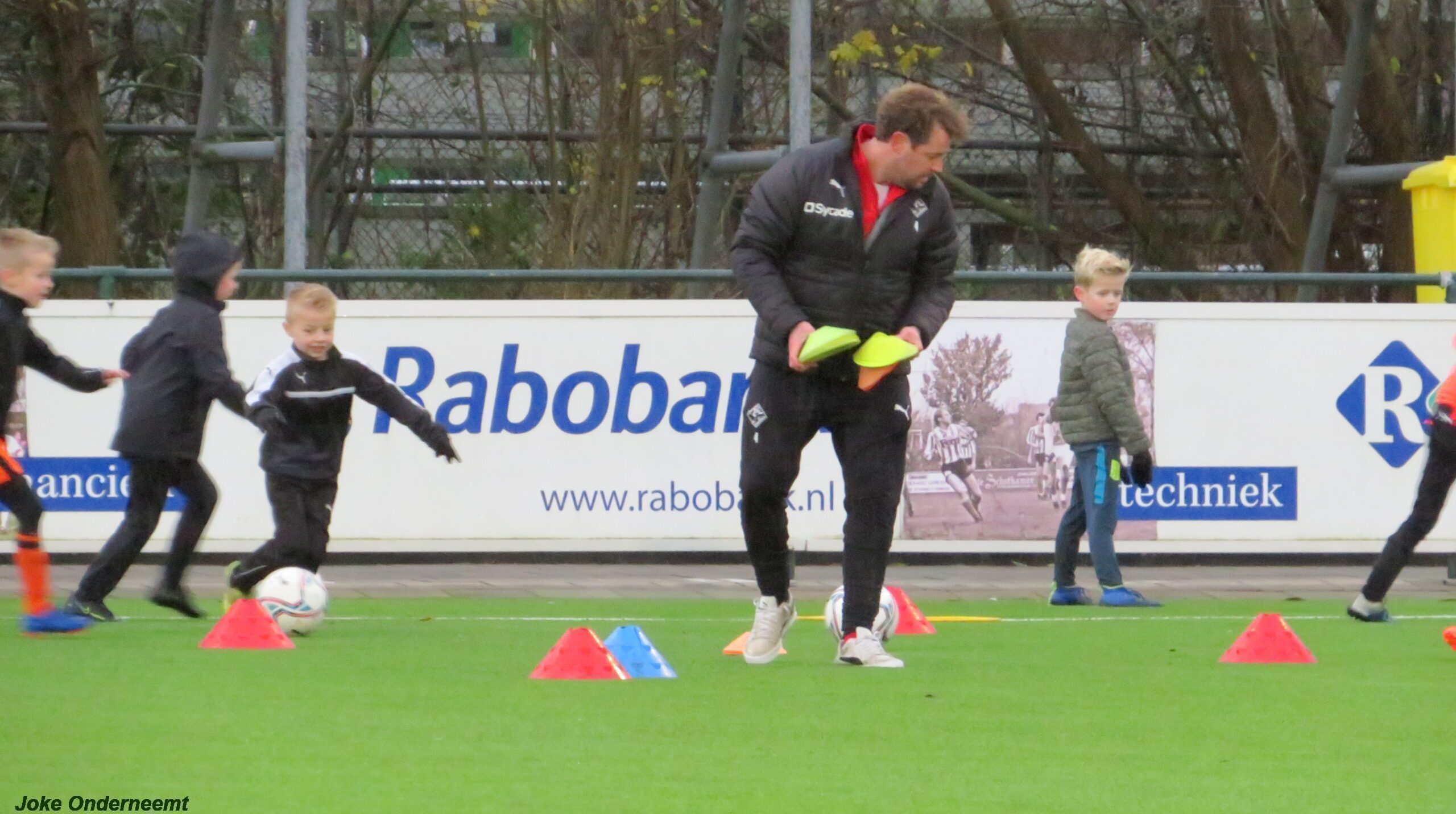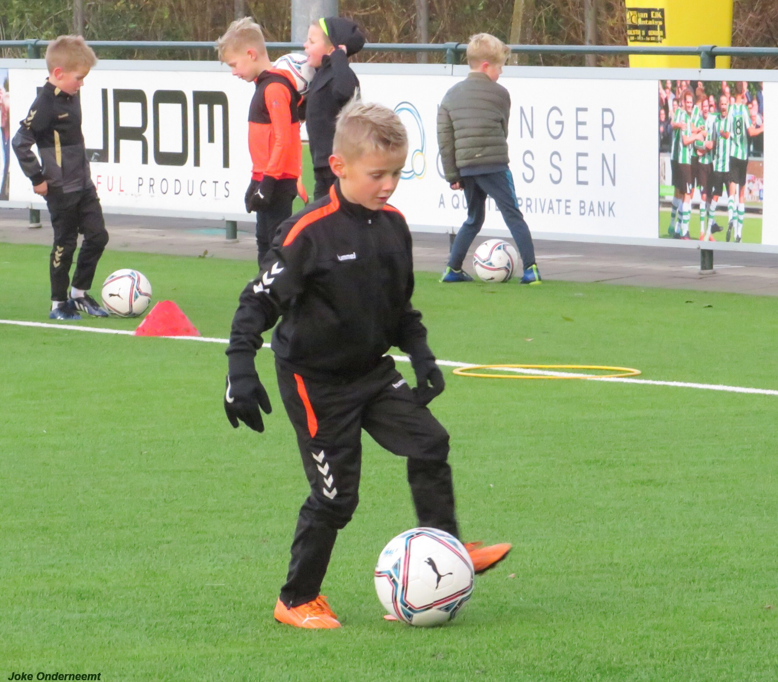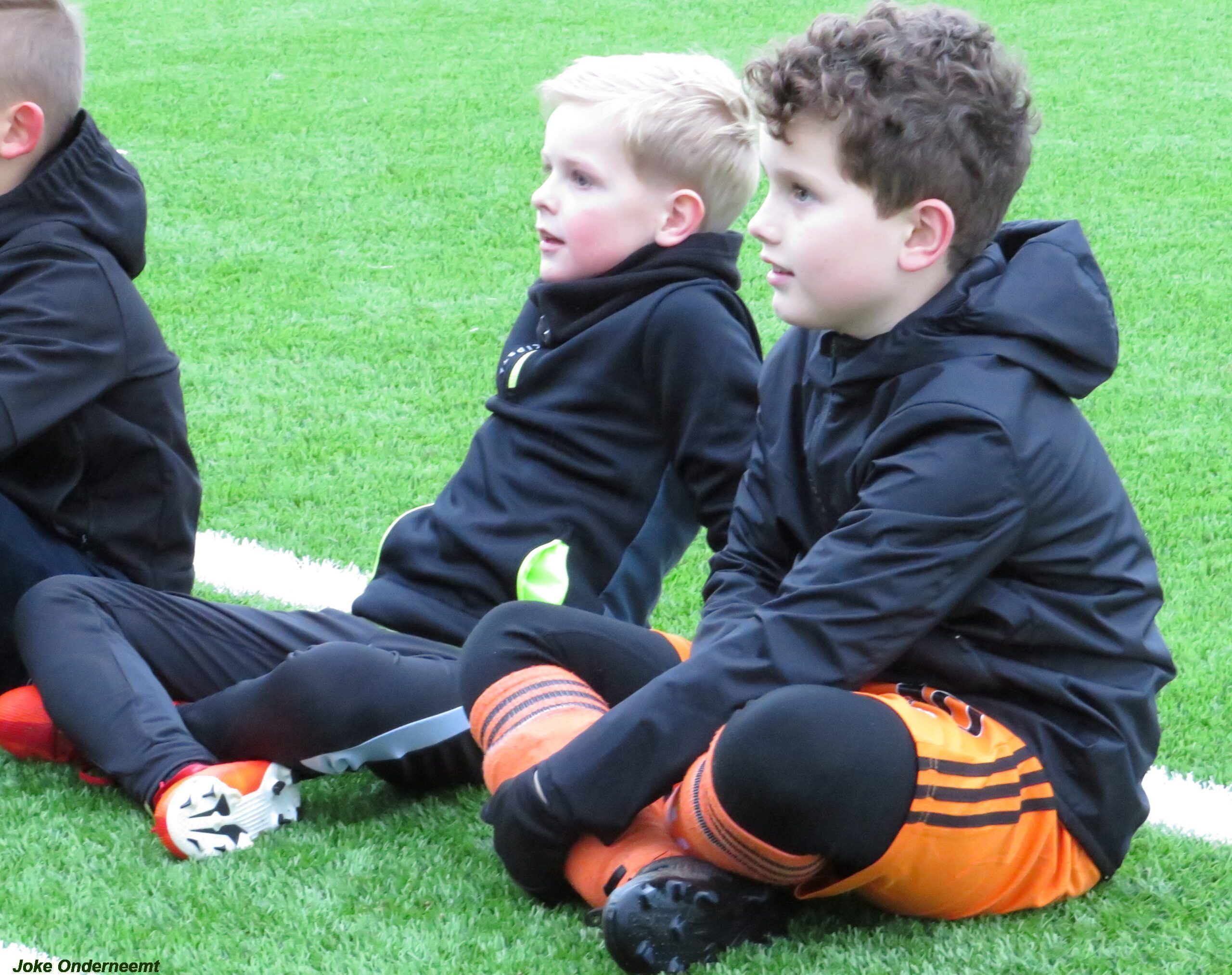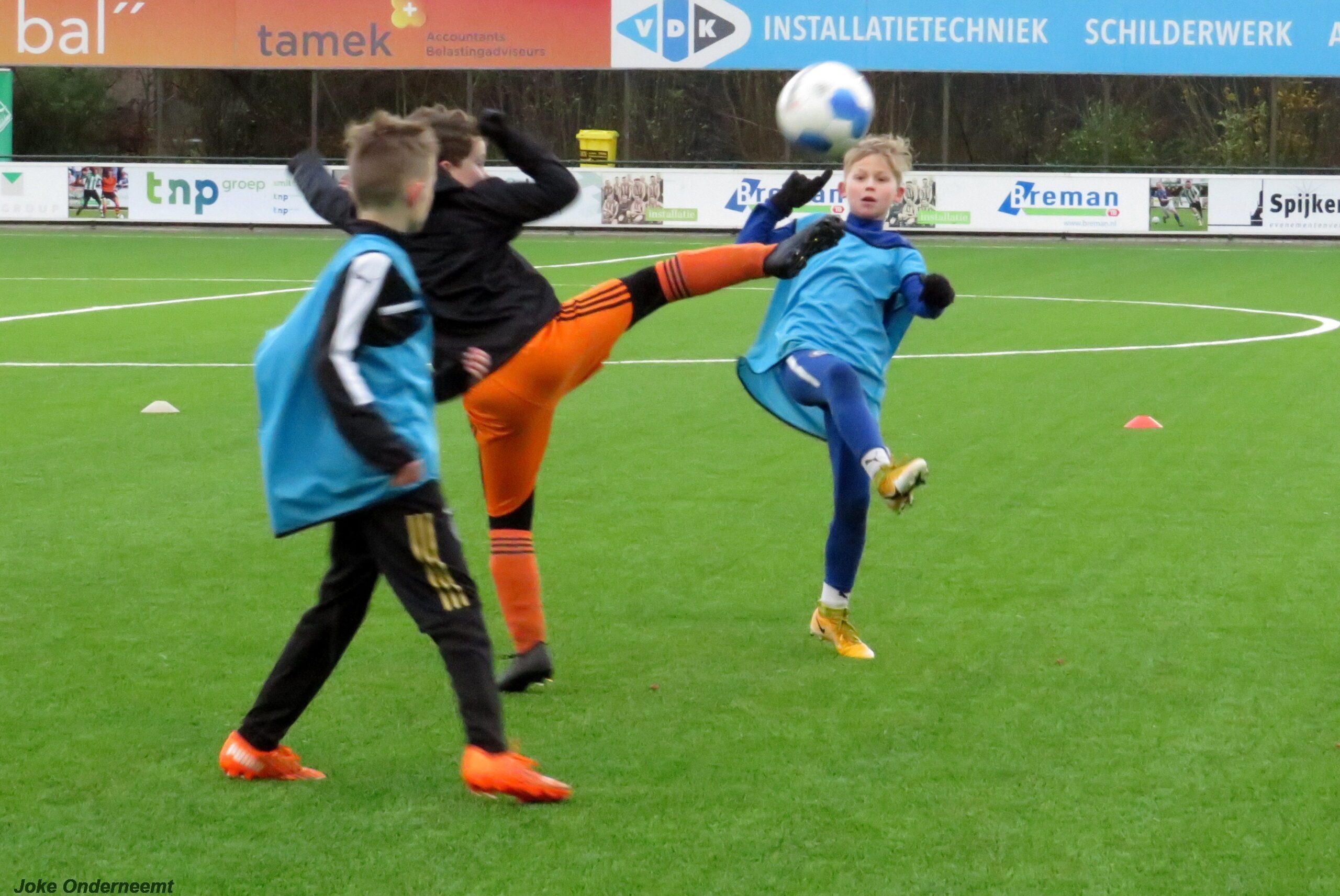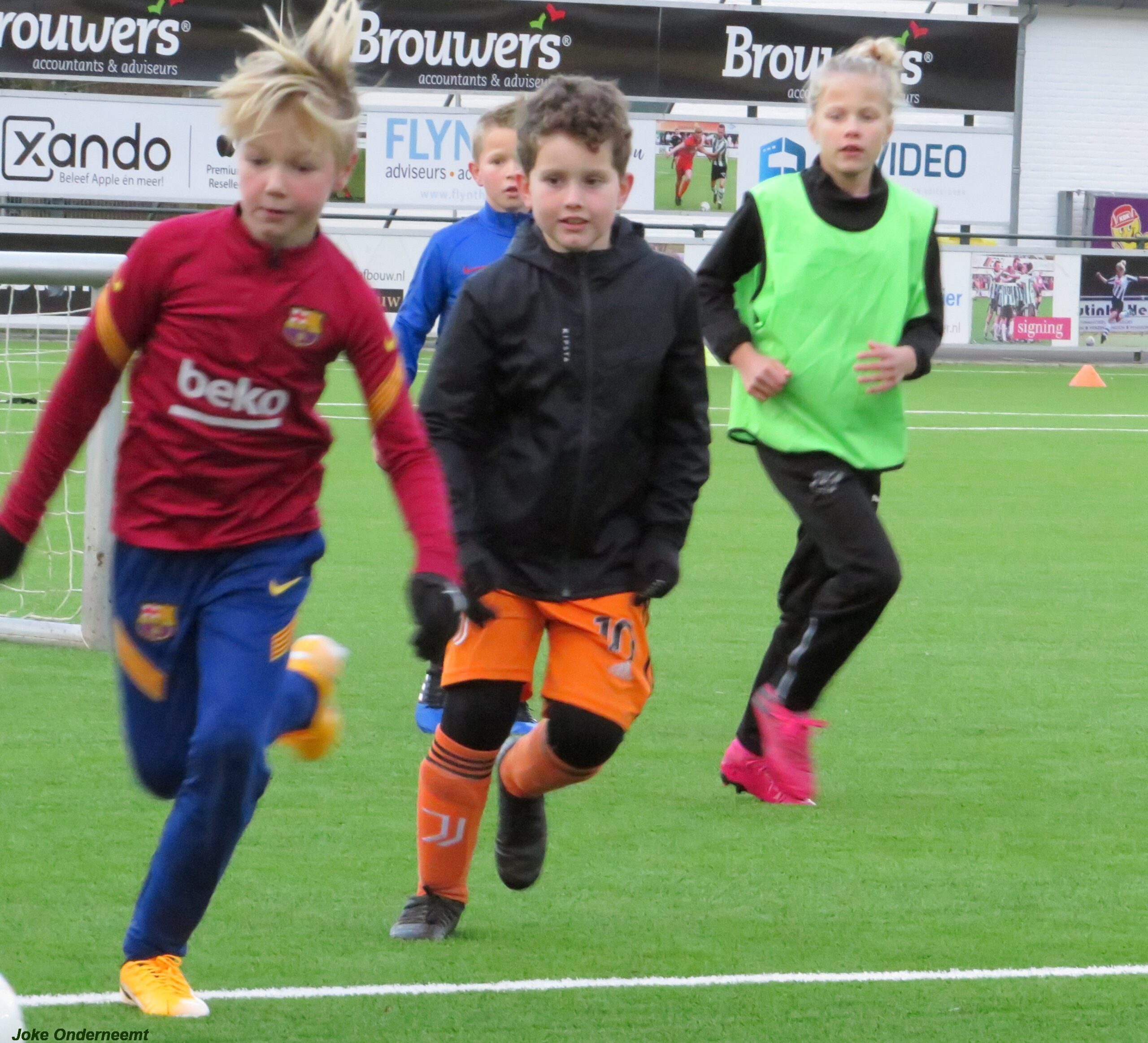 Nadat er vijf teams waren gevormd met de namen Marsepijnteam – Pepernotenteam- Speculaasteam-Chocoladeteam en het Stoombootteam werd er lekker gespeeld en toen kwamen er onverwachts in de rust twee pieten het veld op en kregen de spelertjes allemaal een zakje met pepernoten. Ook hielpen de pieten na wat uitleg te hebben gekregen, maar even met vlaggen want ze vonden voetballen zelf ook wel erg leuk.