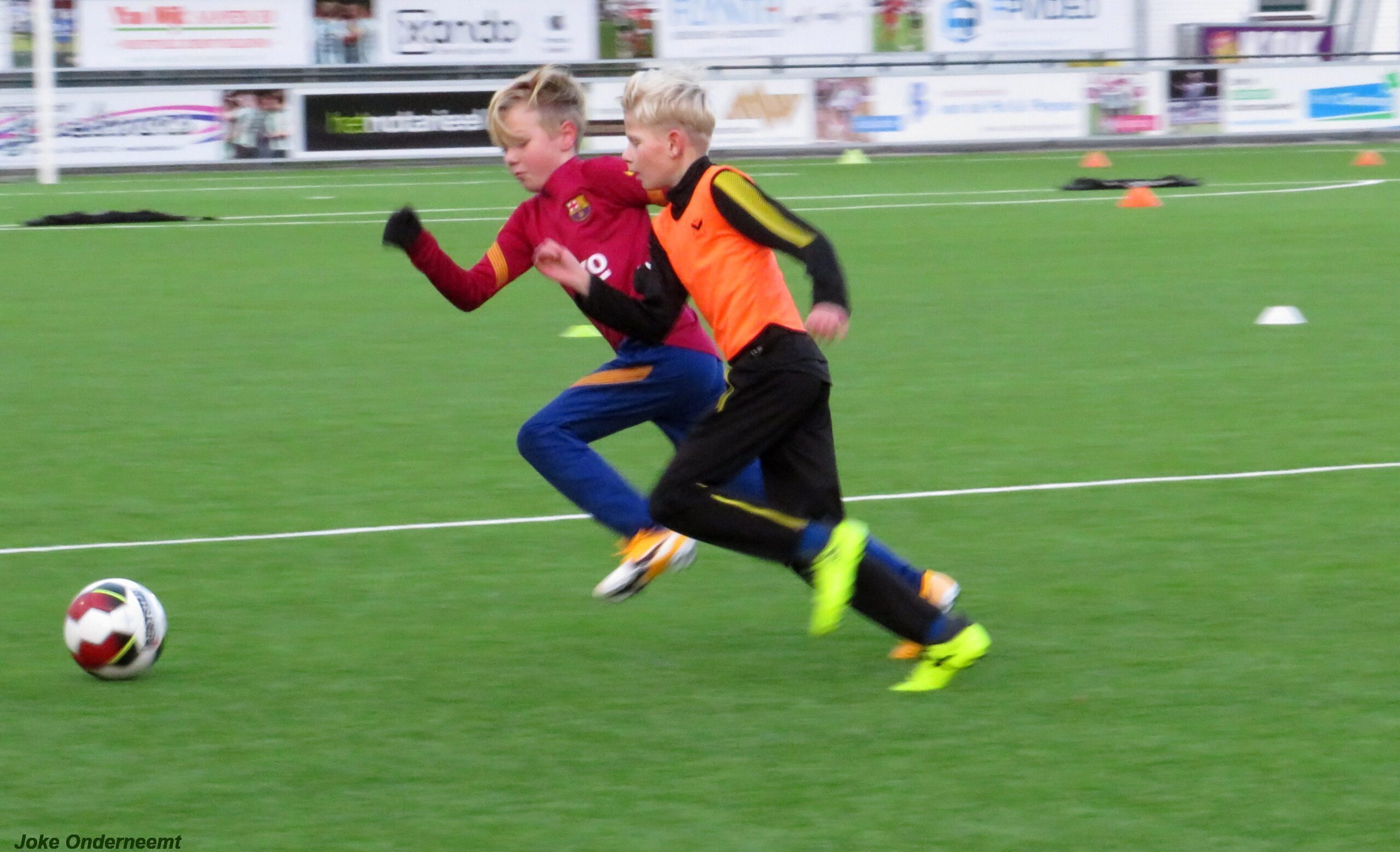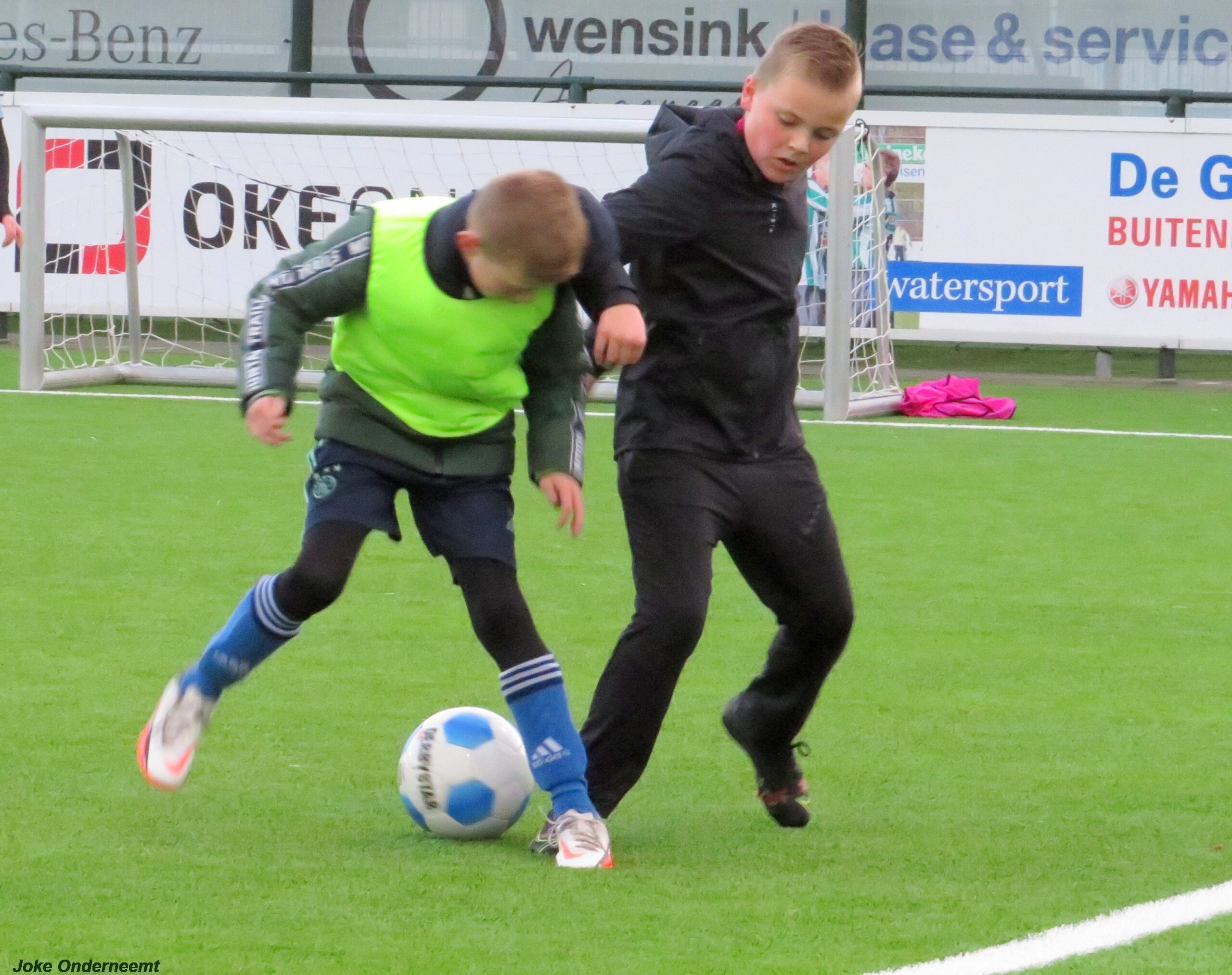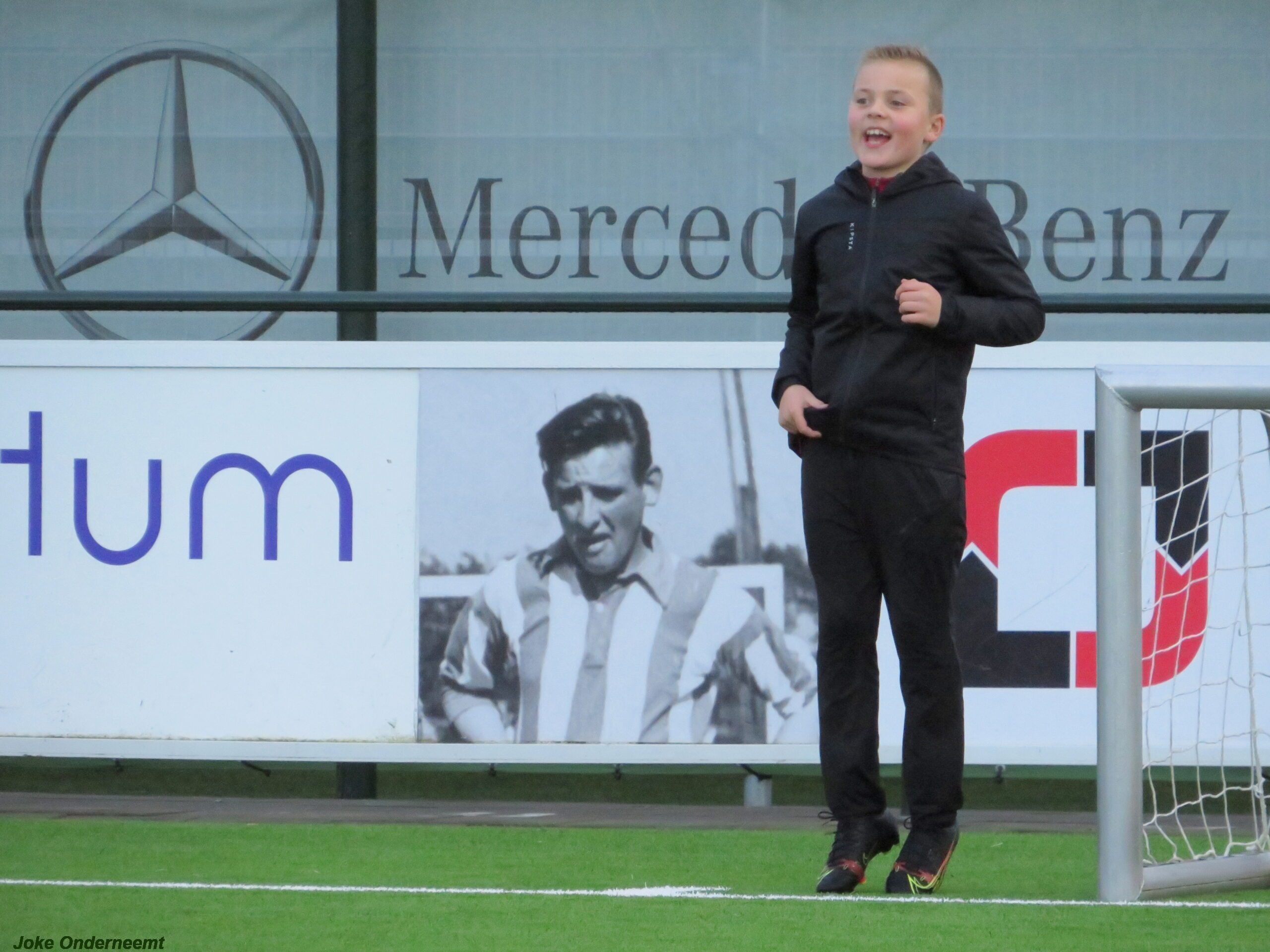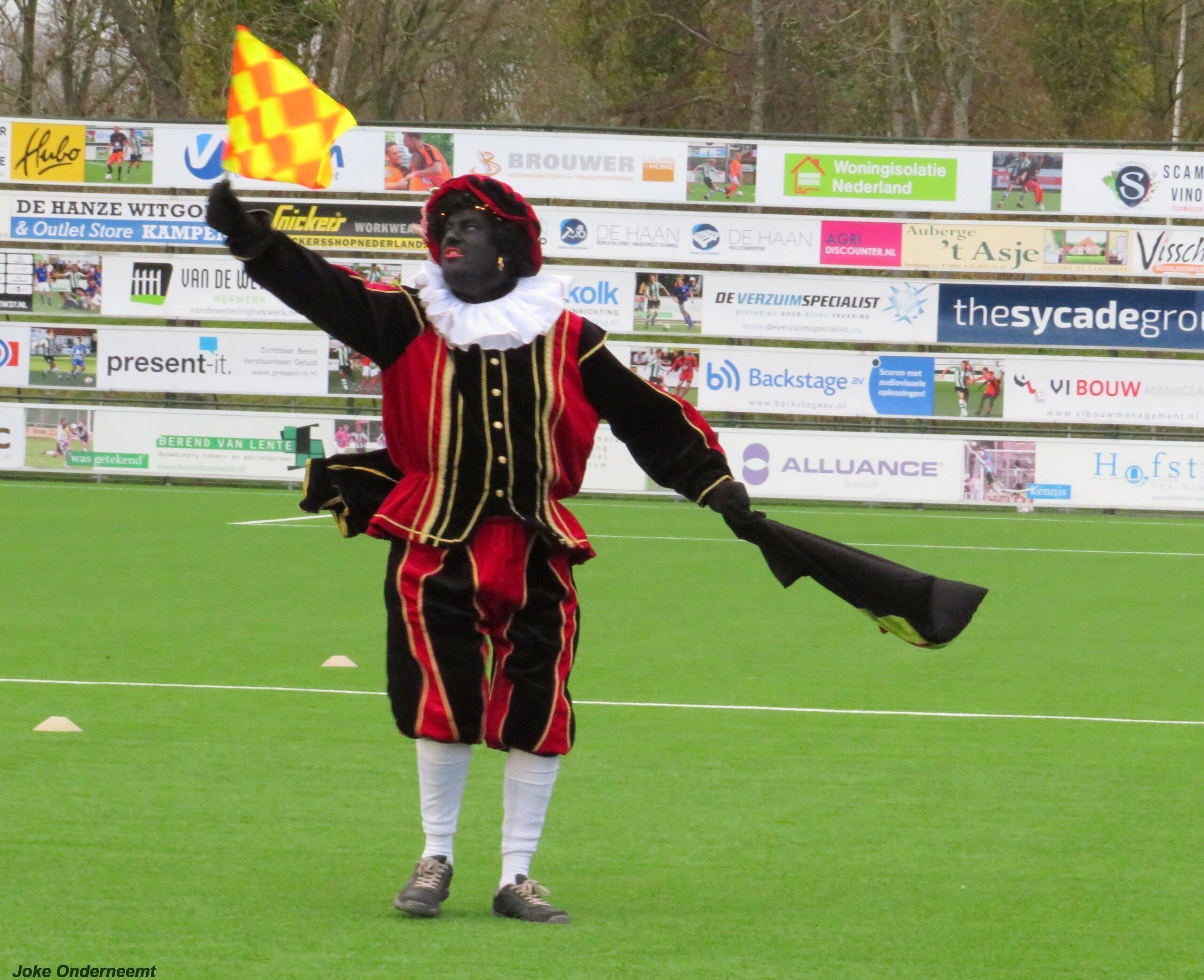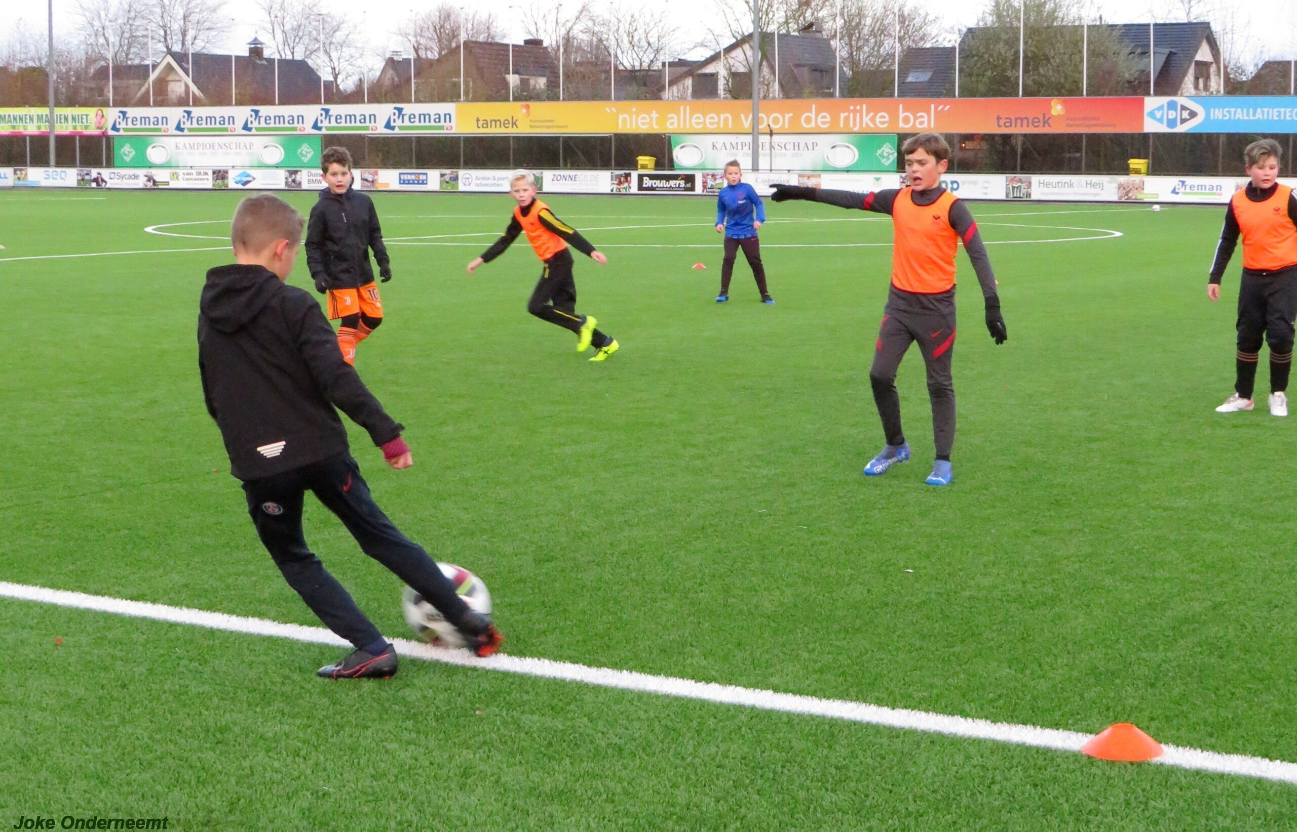 Nadat er vijf teams waren gevormd met de namen Marsepijnteam – Pepernotenteam- Speculaasteam-Chocoladeteam en het Stoombootteam werd er lekker gespeeld en toen kwamen er onverwachts in de rust twee pieten het veld op en kregen de spelertjes allemaal een zakje met pepernoten. Ook hielpen de pieten na wat uitleg te hebben gekregen, maar even met vlaggen want ze vonden voetballen zelf ook wel erg leuk.