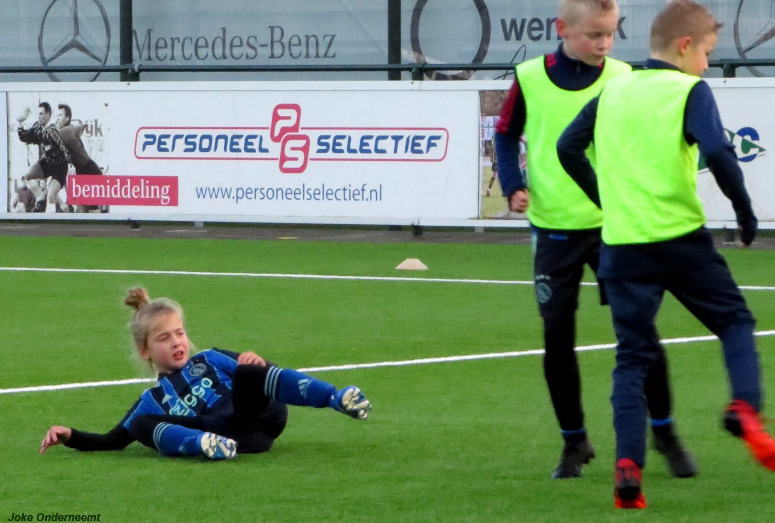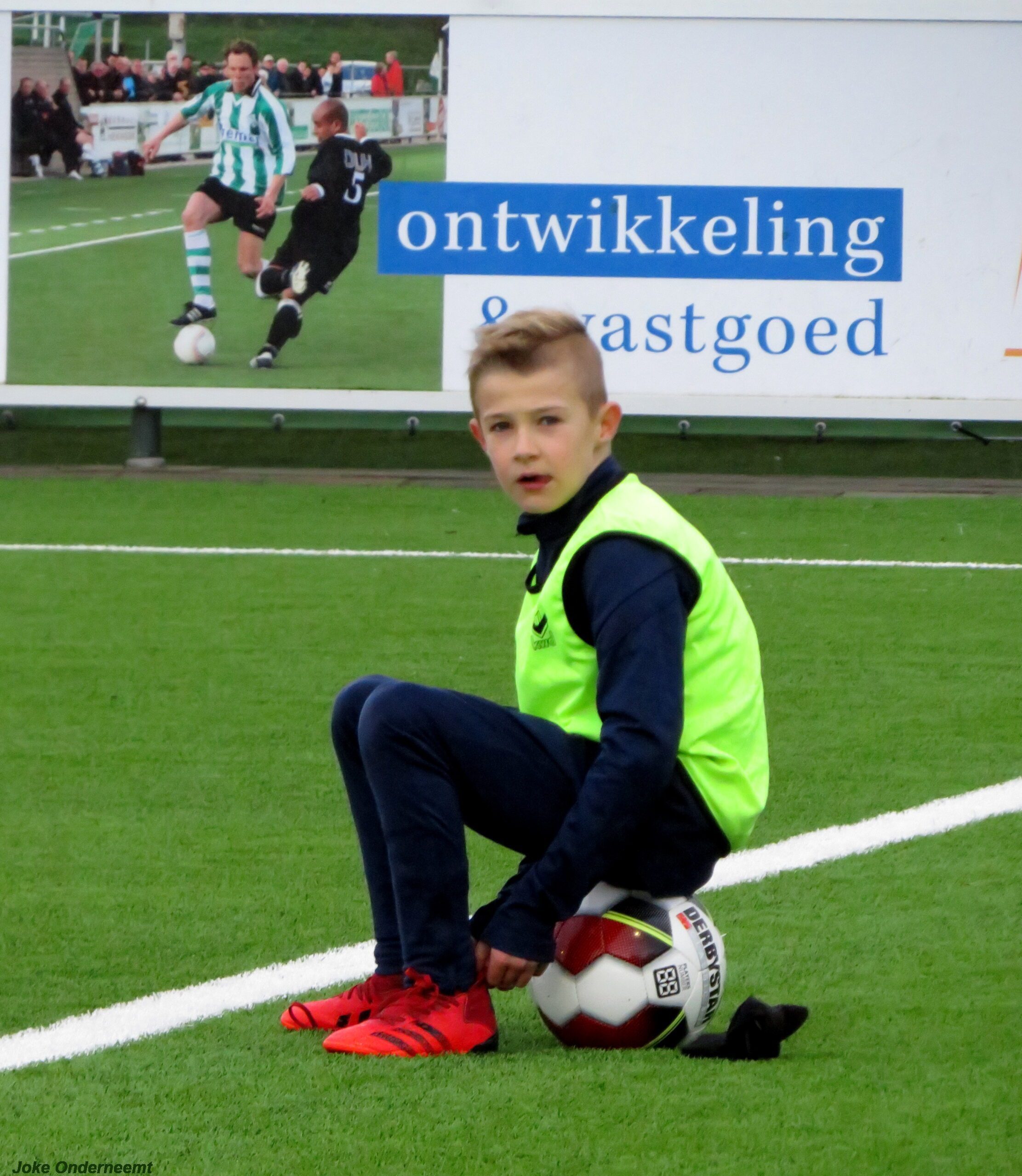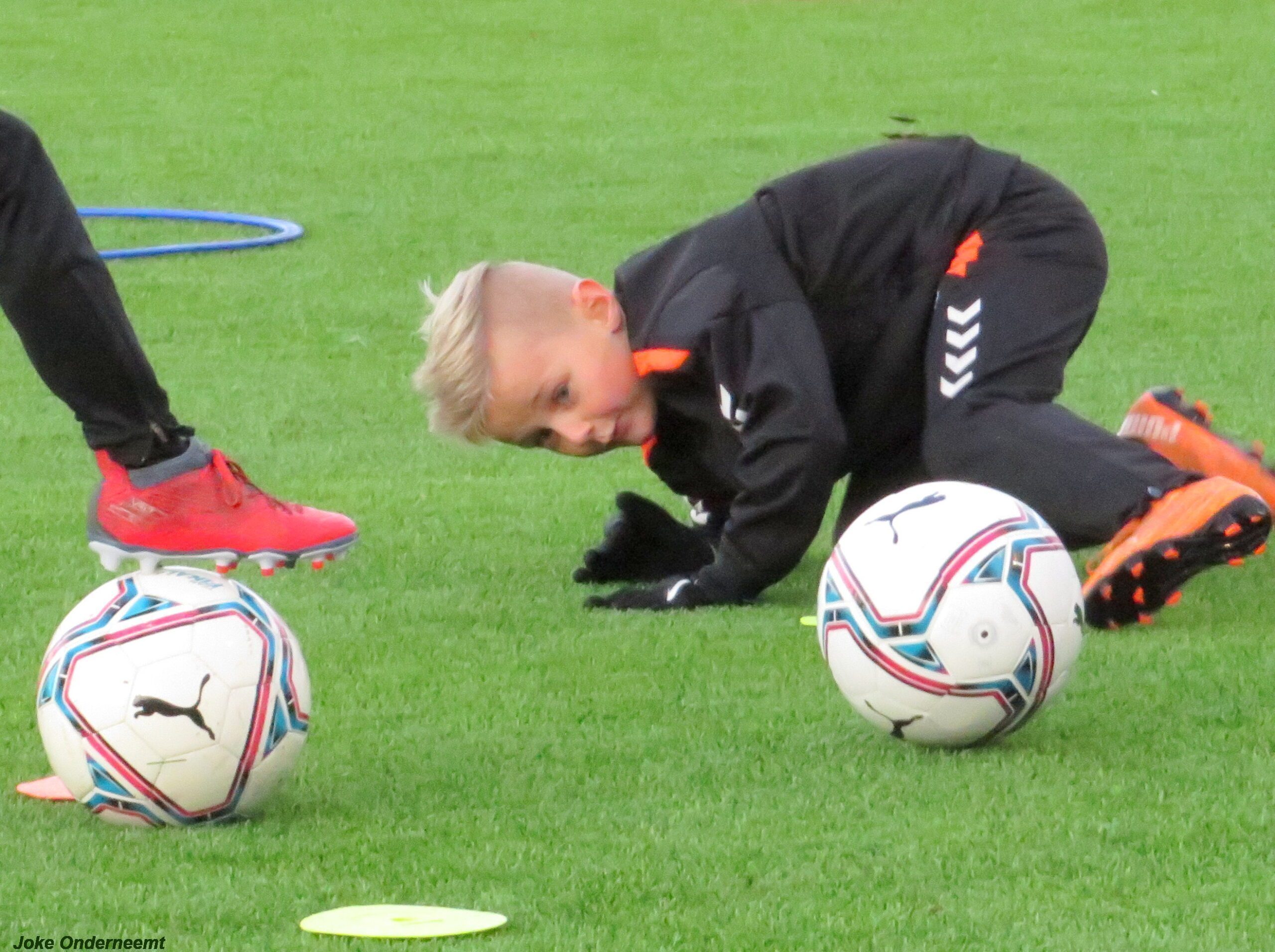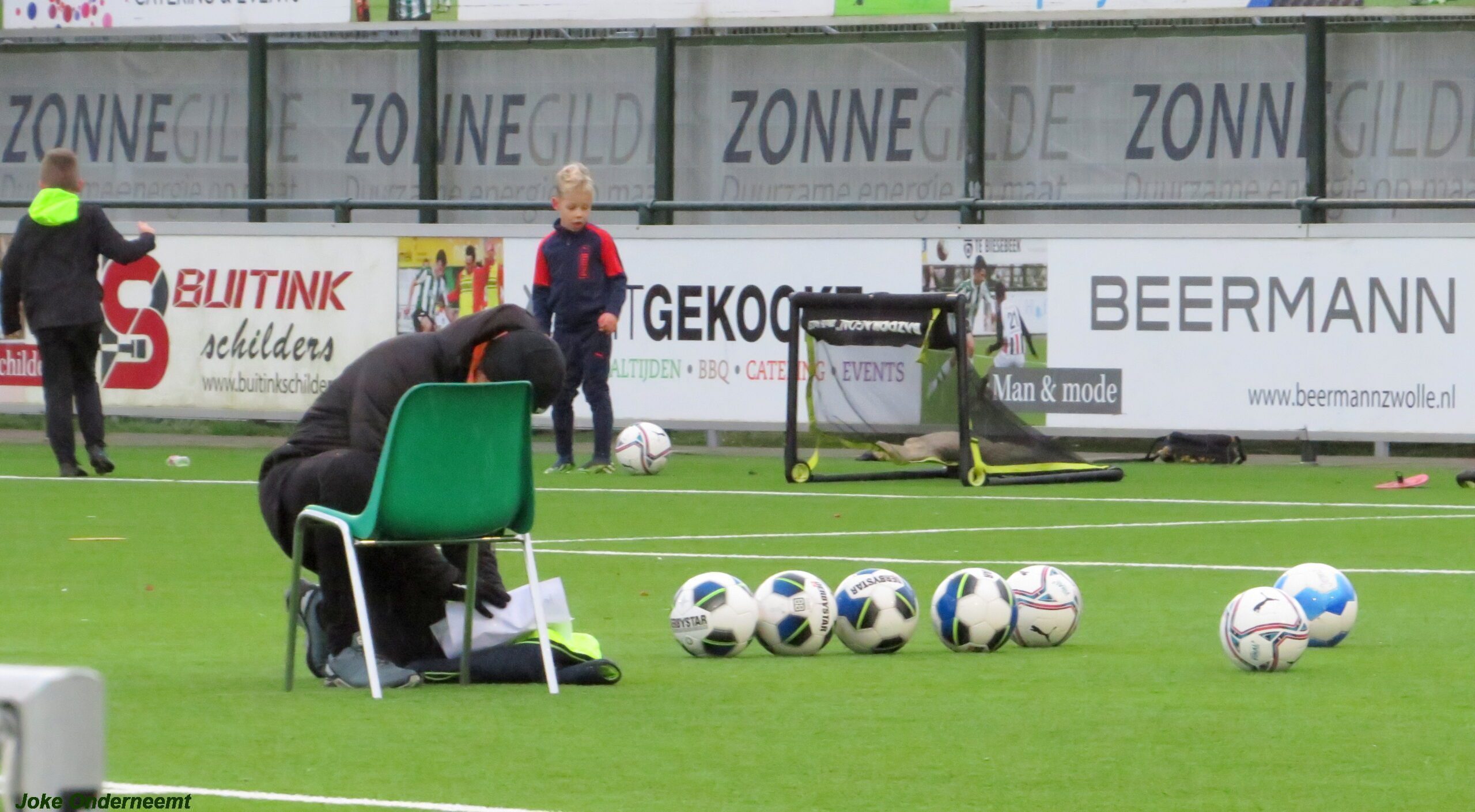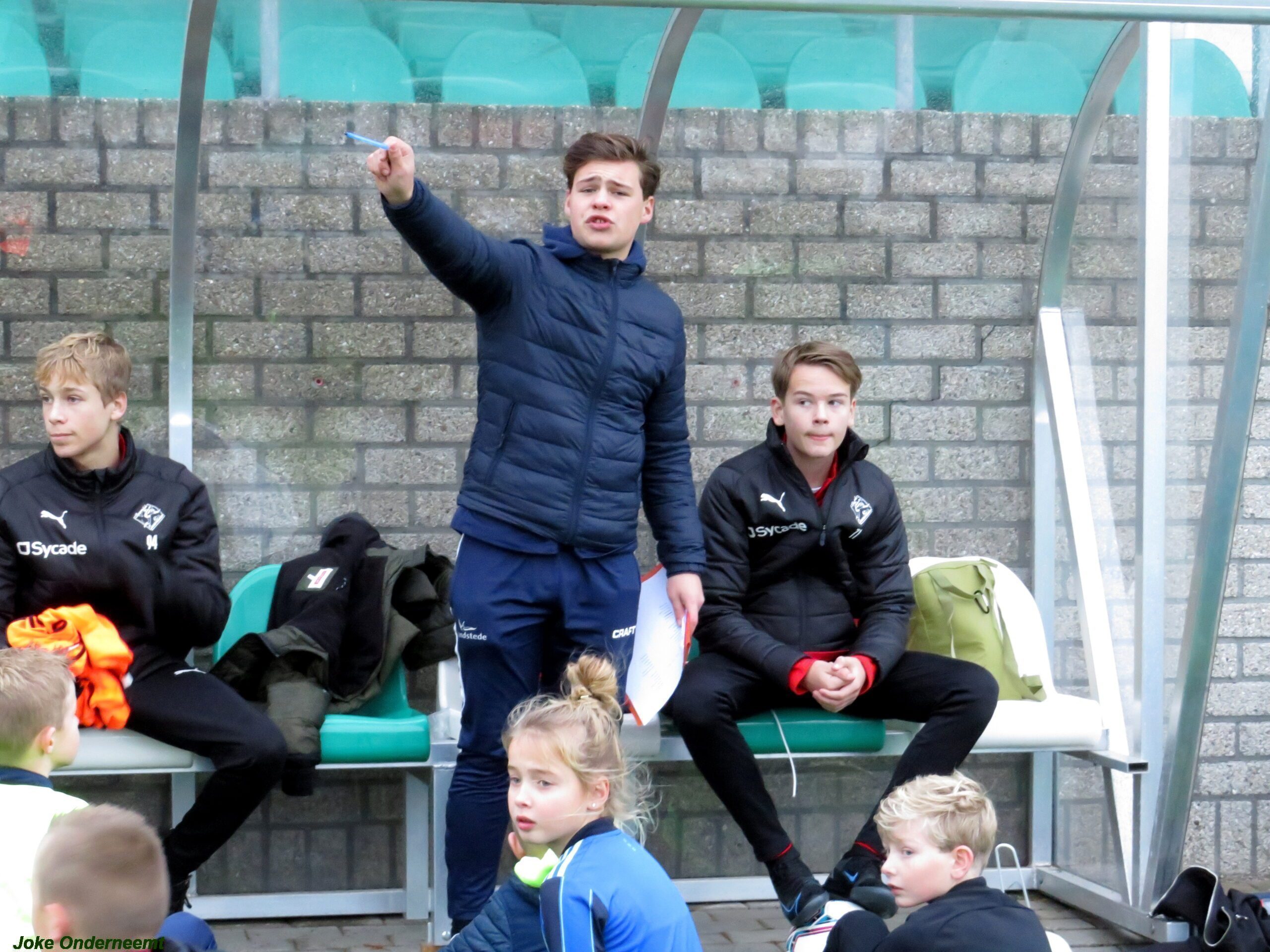 Nadat er vijf teams waren gevormd met de namen Marsepijnteam – Pepernotenteam- Speculaasteam-Chocoladeteam en het Stoombootteam werd er lekker gespeeld en toen kwamen er onverwachts in de rust twee pieten het veld op en kregen de spelertjes allemaal een zakje met pepernoten. Ook hielpen de pieten na wat uitleg te hebben gekregen, maar even met vlaggen want ze vonden voetballen zelf ook wel erg leuk.