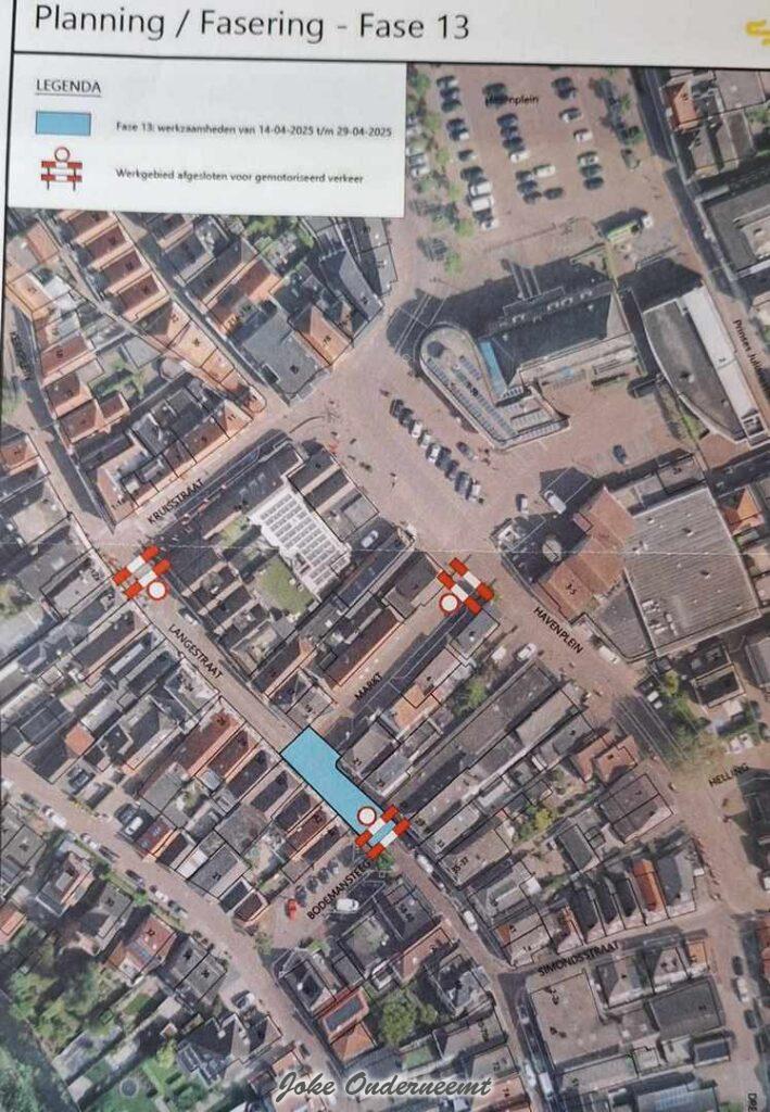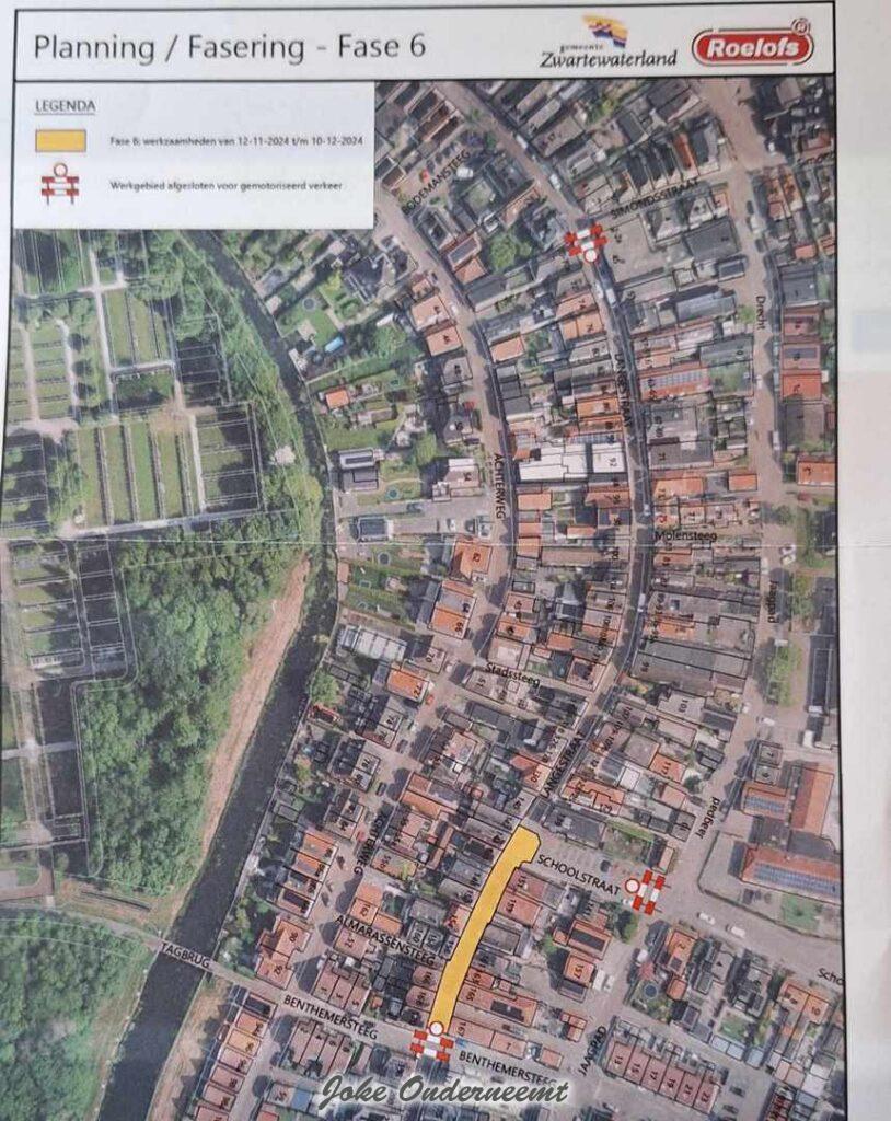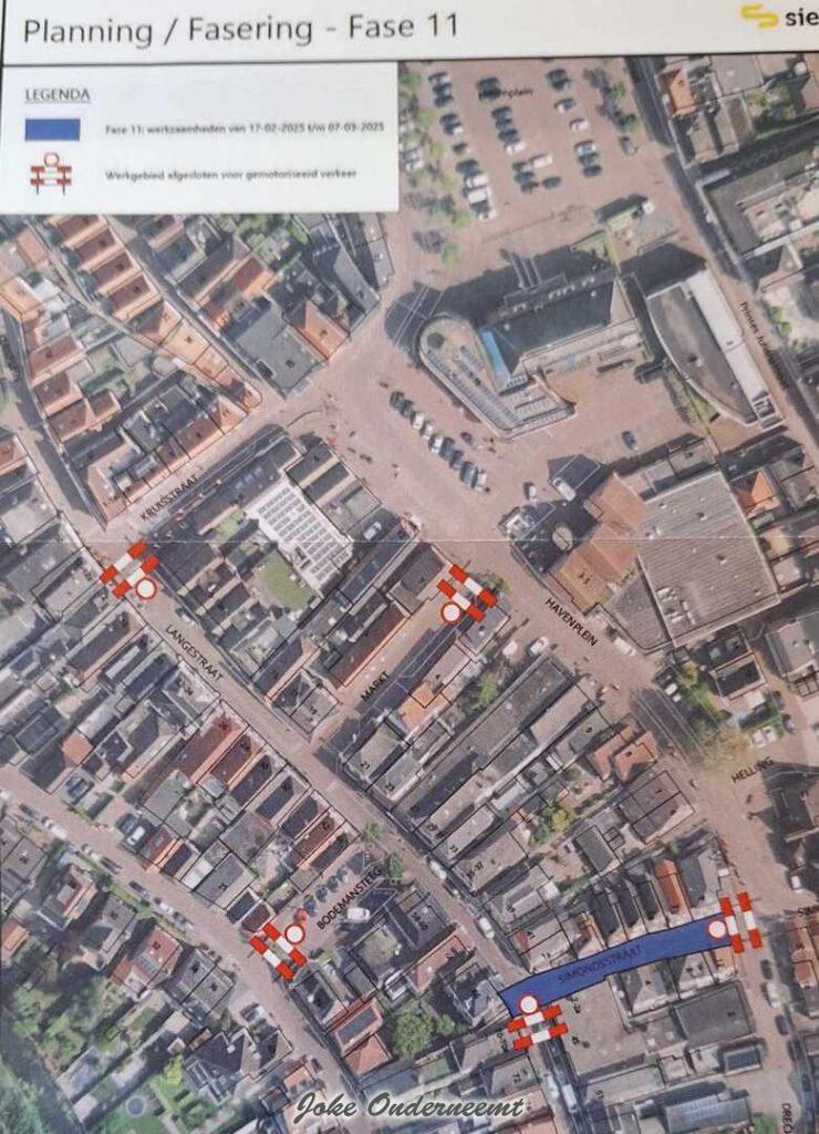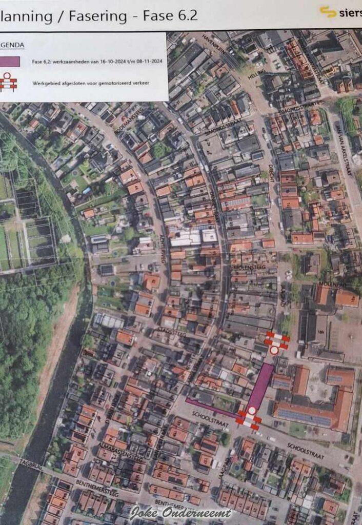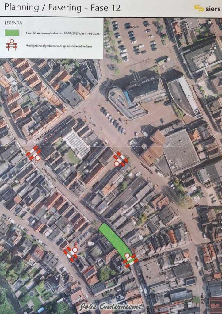 Ik heb een foto gemaakt van elke fase vanaf 16 oktober, daarop kunt u precies zien waar ze gaan werken en ook zeker belangrijk is te zien waar de hekken staan ter afsluiting van de weg op dat moment ! ( en nee stiekem er door gaan zou ik niet doen met de auto)