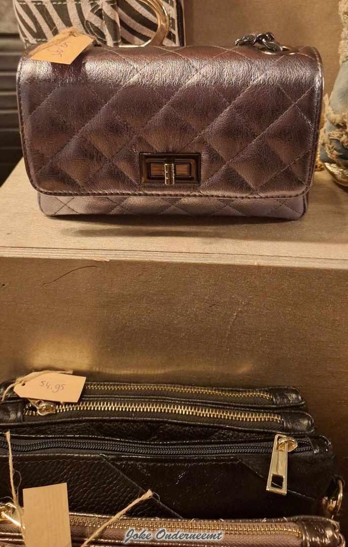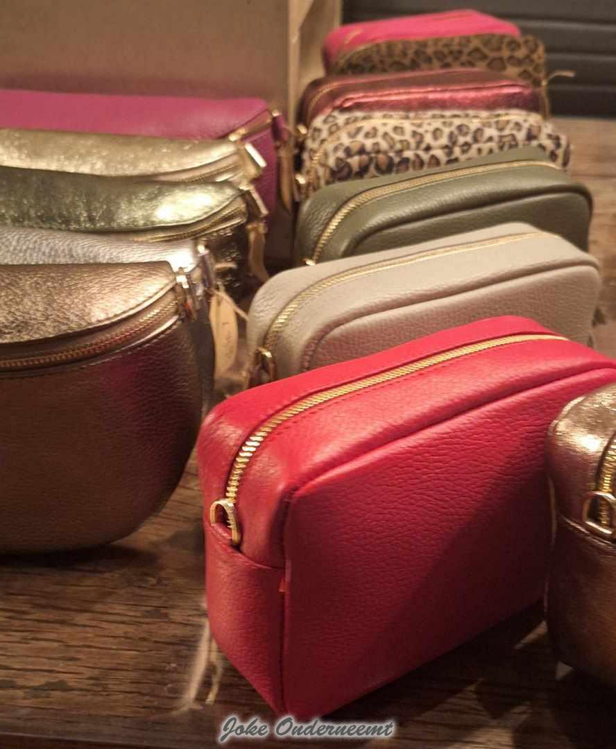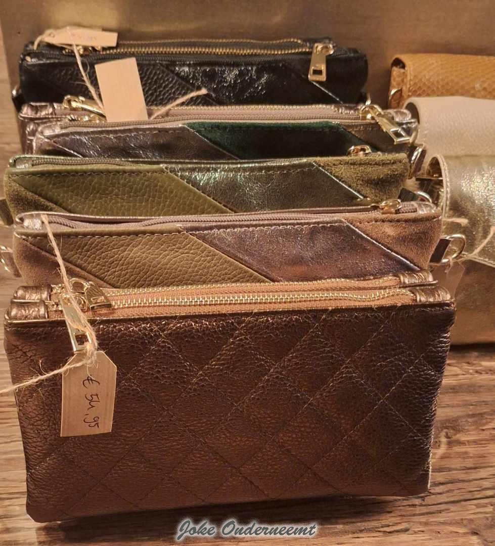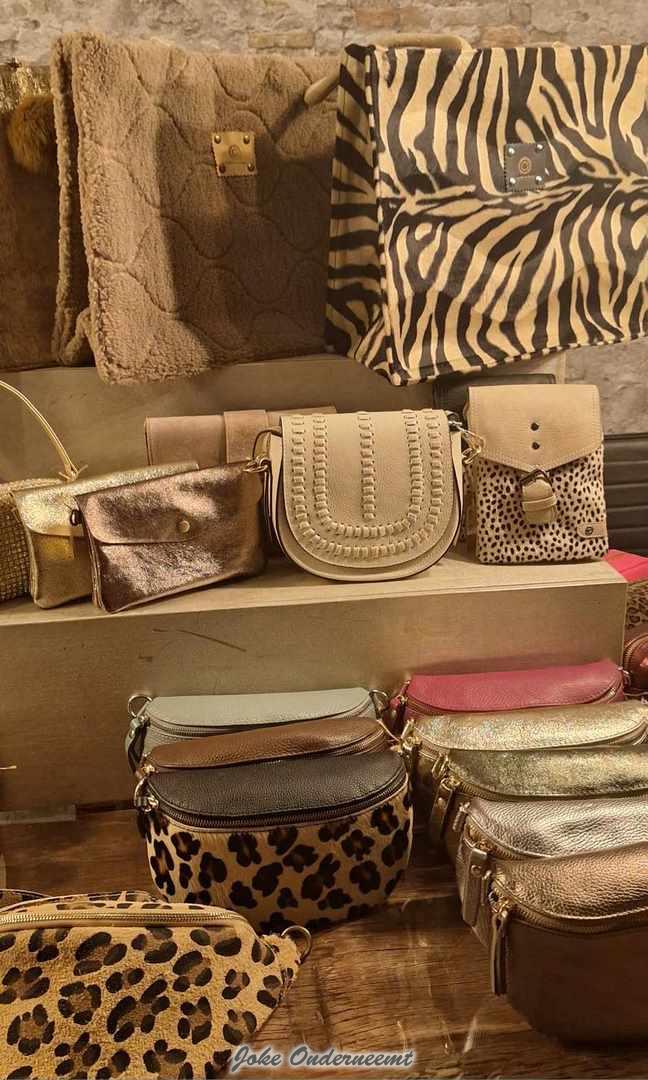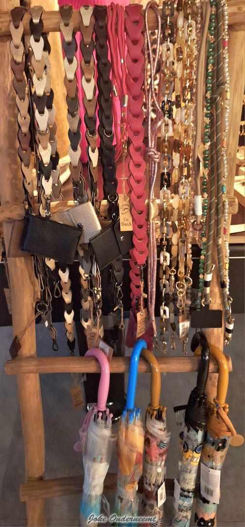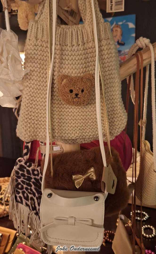Kindertasjes, kindermutsen, kindersjaals, kinderparapluutjes, gilets in kleine en grote maten, sieraden, leren tasjes, korte en lange telefoonkoorden, en leuke kadootjes voor onder de boom.