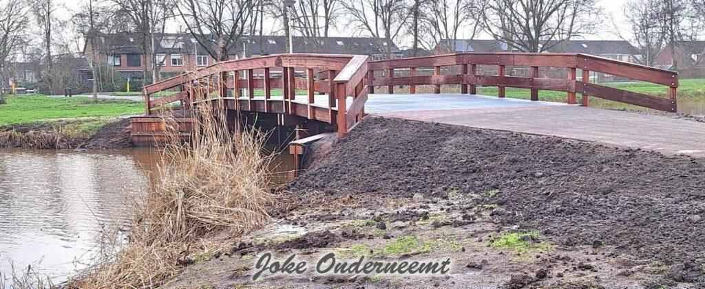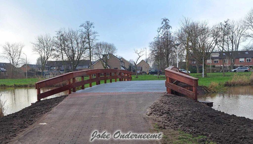 De Firma BRI Civiele Techniek BV heef het straatwerk aan beide zijde van de brug een aantal meters opnieuw ingelegd, het hele pad wordt aankomend jaar opnieuw gelegd liet een werknemer weten. Maar vooreerst is het nu weer keurig begaanbaar..
