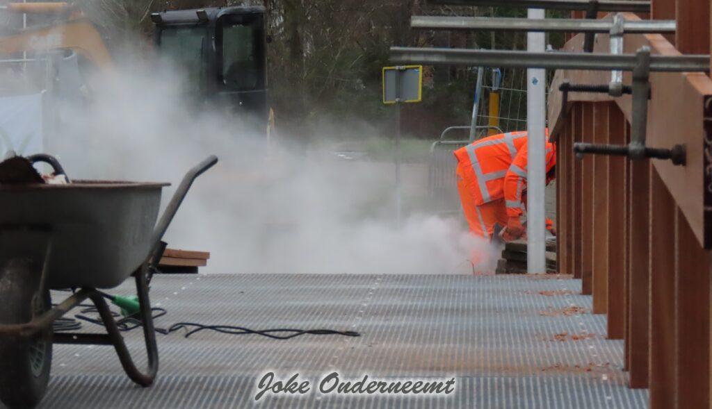 Vorige week en gisteren zijn de mensen van de Firma Visscher Waterbouw nog hard aan het werk geweest, maar nu vanmorgen was het dan zover de brug is weer OPEN.