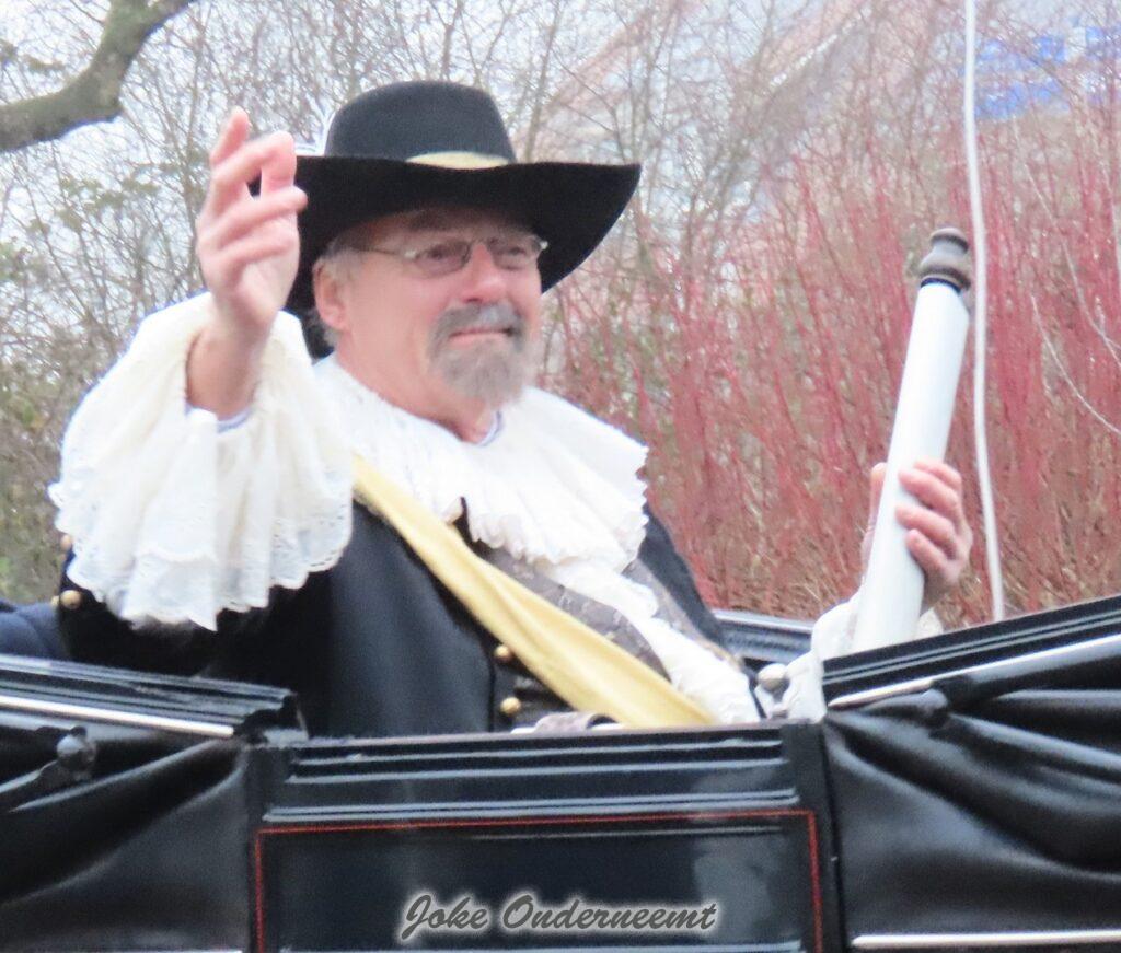 Na dat de rit via de Meente naar ’t Olde Stadhuus ging stapte daar een goed geklede en nog steeds goed uitziende Jan van Nassau trots uit zijn koets.