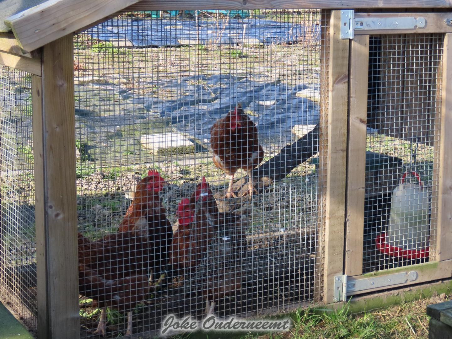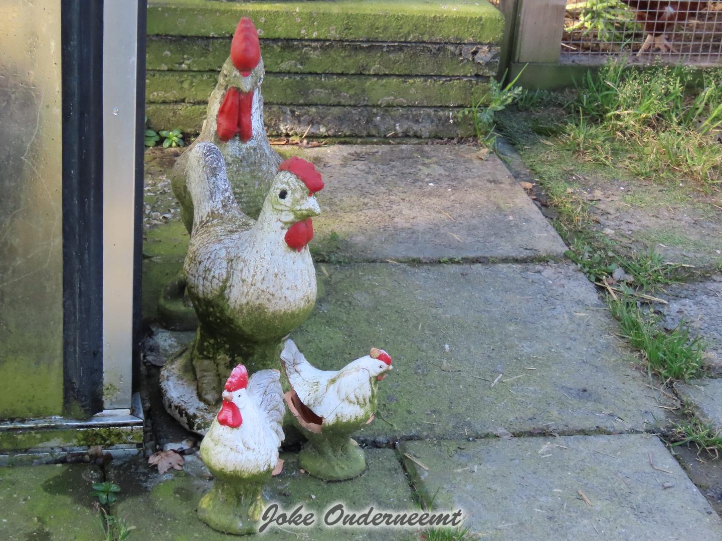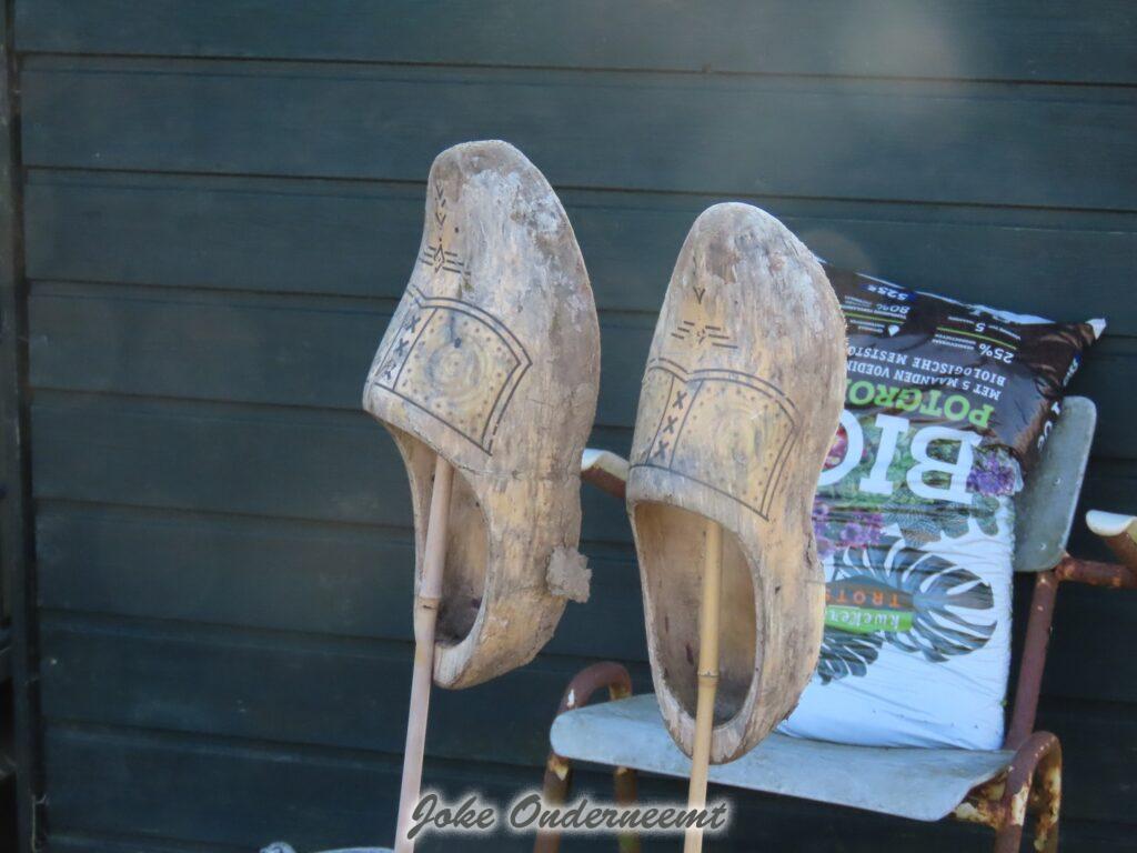 Ook mogen er nu kippen op de tuin en dat was een leuk gekakel .. nee niet los lopen natuurlijk ! Klompen en laarzen zag je netjes op stokken en alles zag er gezellig en verzorgd uit.