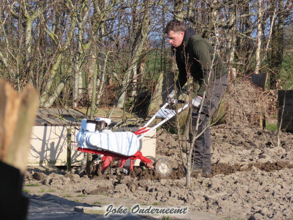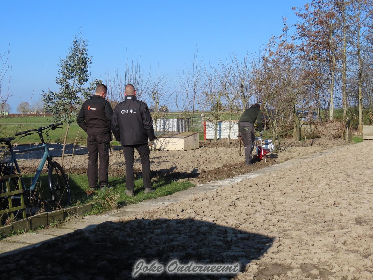 En ook met frezen waren ze begonnen en dat betekend dat na het frezen de grond bewerkt kan worden . Het frezen is een pittig werkje want het is een harde kleigrond.. Een gedeelte van een tuin, bij wie ik stond vertelde dat hij “Alblasserwaardse” kleigrond had.