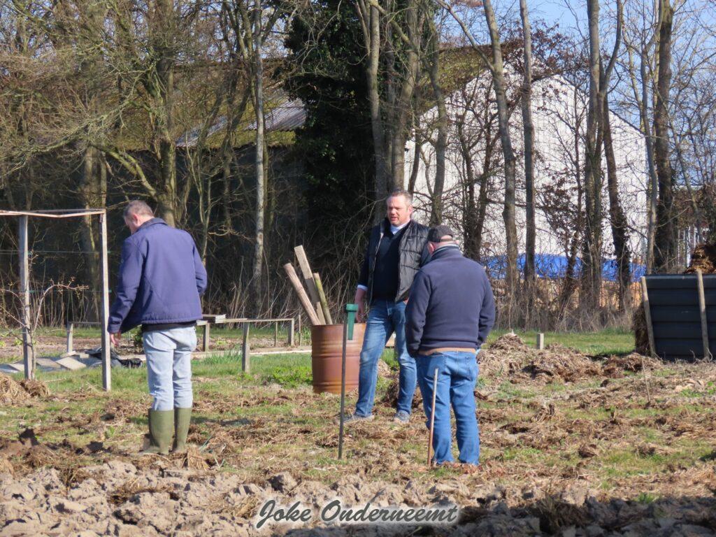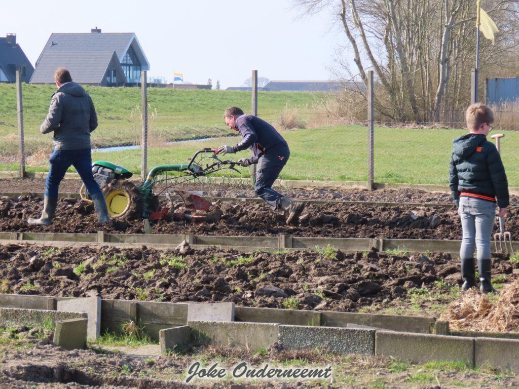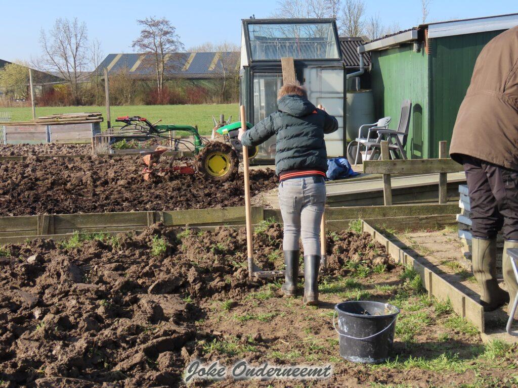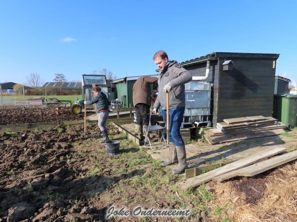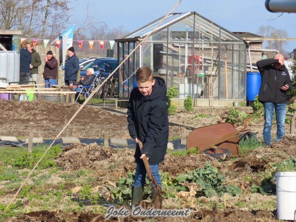 Jong en oud waren druk bezig op hun stuk land, en de jongste die ik tegenkwam was druk in de weer met zijn kruiwagen… ja het is nog altijd zo “jong geleerd is oud gedaan”! En ook was er tijd voor een heerlijk bakje koffie met koek, daar was iedereen wel blij mee.