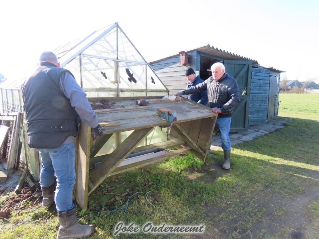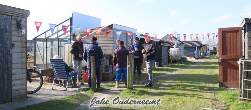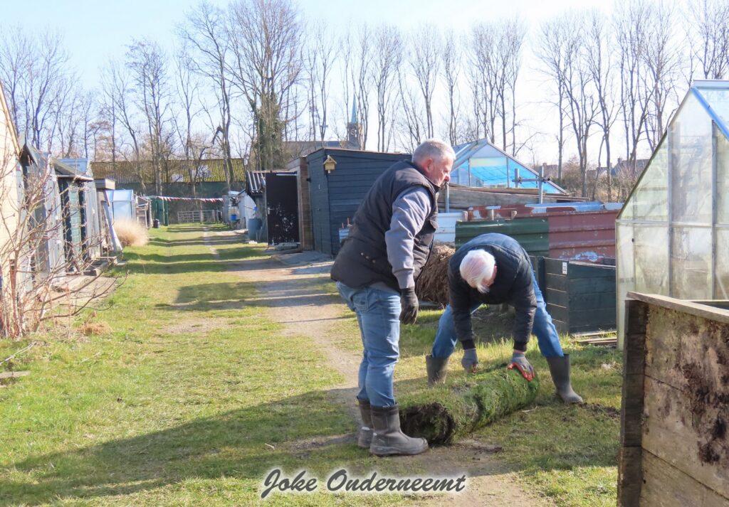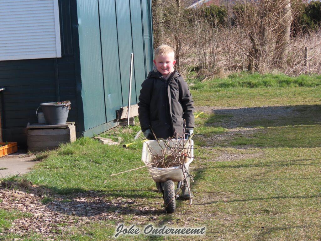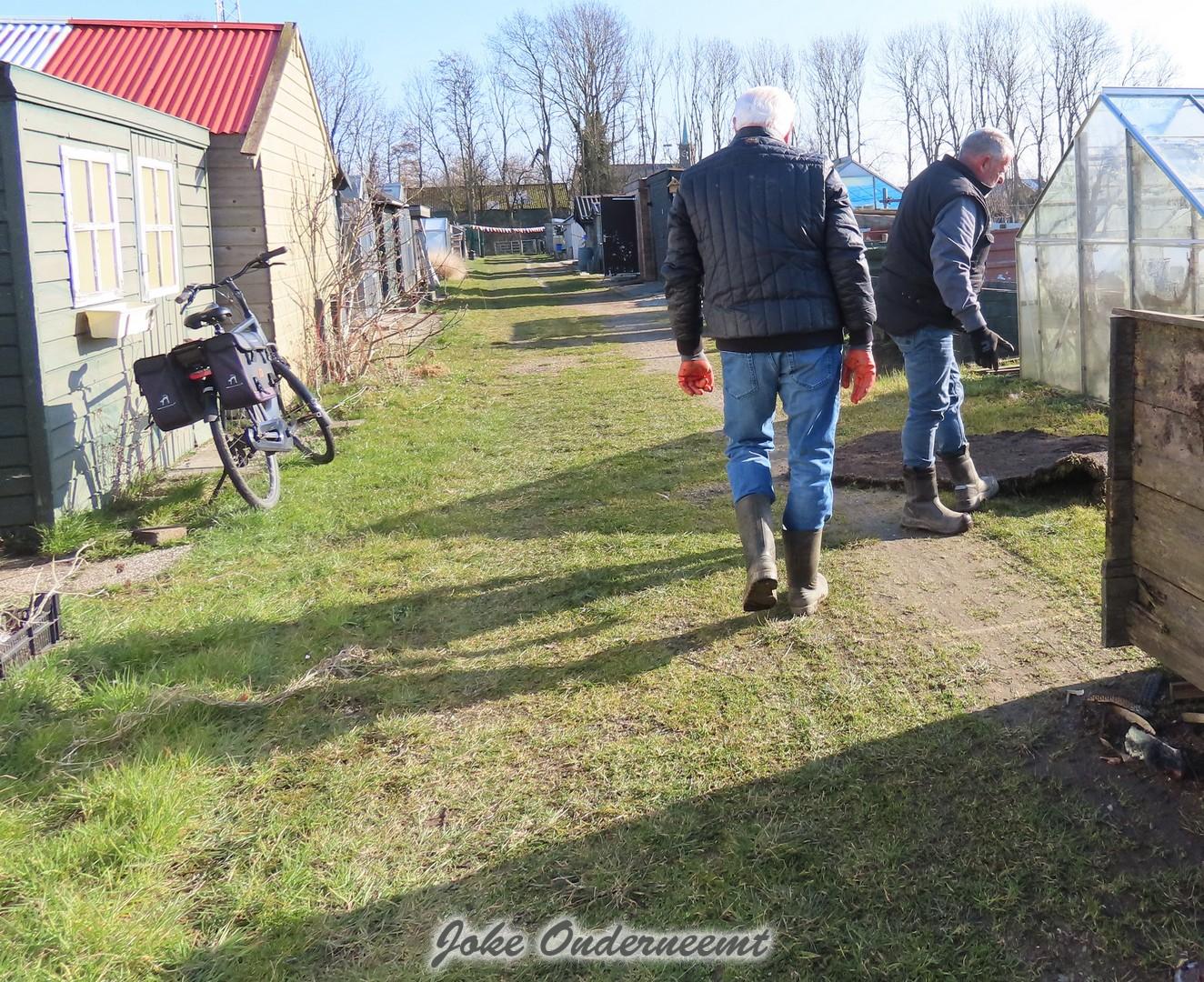 Jong en oud waren druk bezig op hun stuk land, en de jongste die ik tegenkwam was druk in de weer met zijn kruiwagen… ja het is nog altijd zo “jong geleerd is oud gedaan”! En ook was er tijd voor een heerlijk bakje koffie met koek, daar was iedereen wel blij mee.