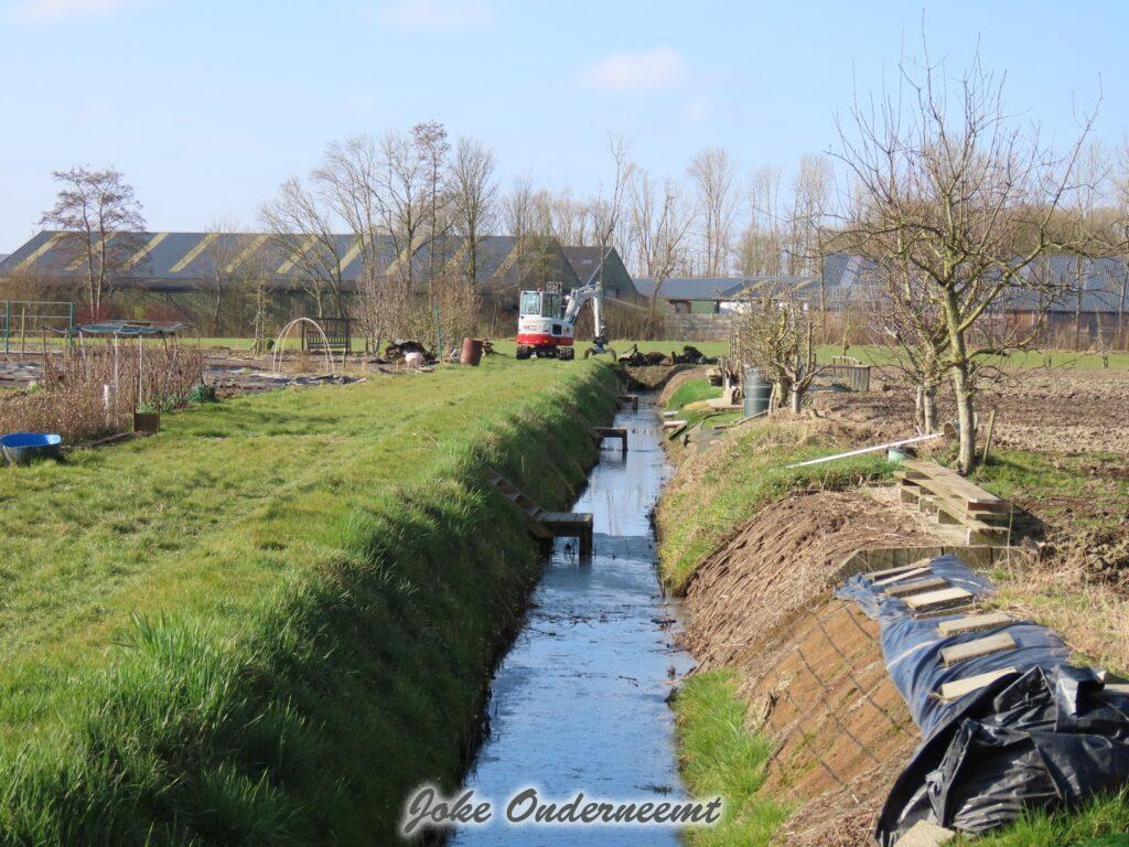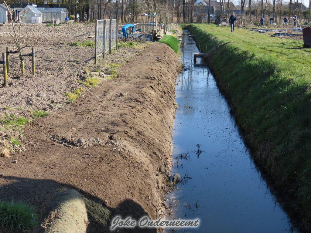 Het kunstgras wat op de kant van de sloten lag werd met een kraan verwijderd.