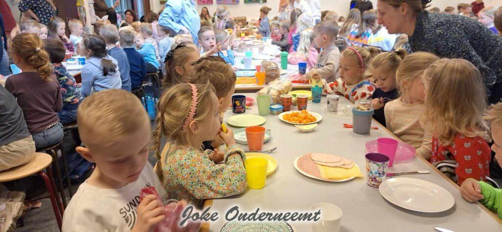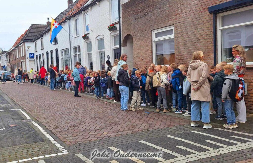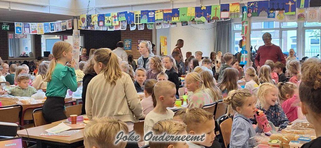 Vanmorgen ging er een lange stoet kinderen langst de Jan van Arkelstraat , het waren alle kinderen van de Kindcentrum Ichtus die waren onderweg naar de Paasviering en Paaslunch.