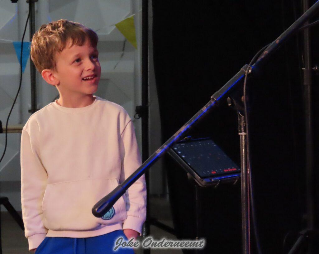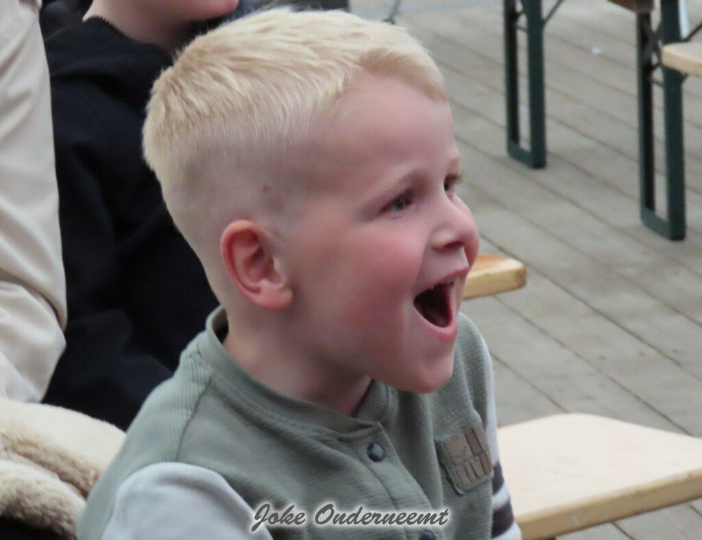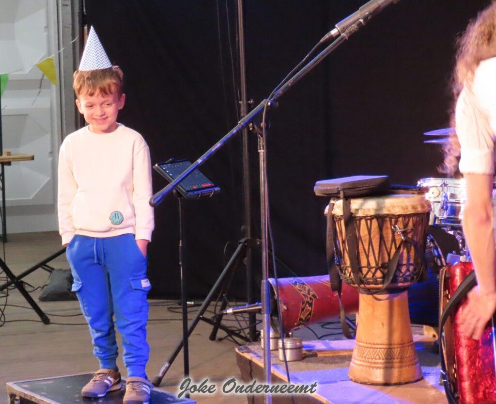 Er was ook een jarige vanmiddag en dat was Silvan.. hij mocht naar voren komen en werd toegezongen door alle kinderen en Thijl op zijn accordeon…