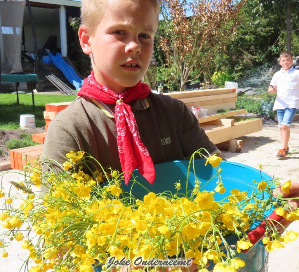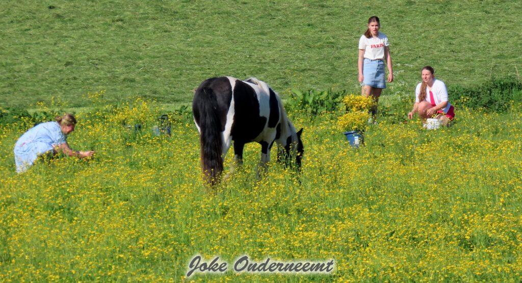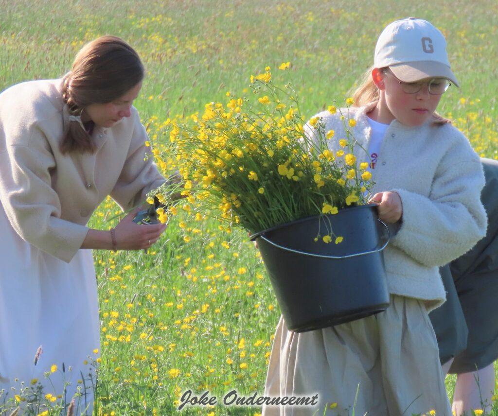 Gelukkig is het prachtig weer en de sfeer is al geweldig gezellig ! Door heel Genemuiden zie je veel kinderen met emmers in de weilanden of aan een slootkant emmers vol plukken.