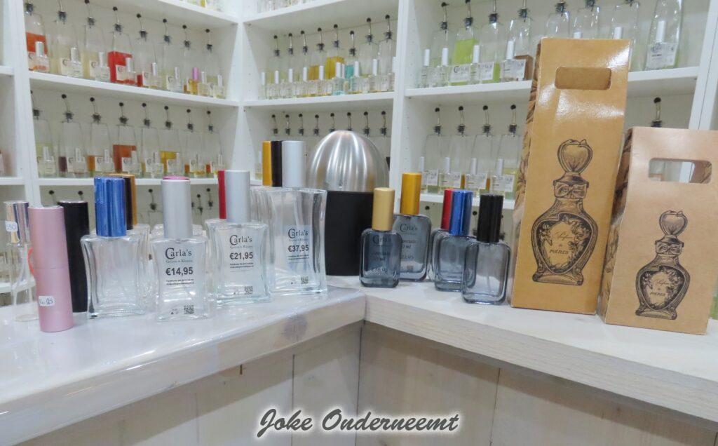 Maar waar Carla’s Geuren en Kleuren ook bekend om staat is de grote collectie heerlijke parfums, deze is inmiddels al weer uitgebreid zowel in de dames als heren geurlijn.