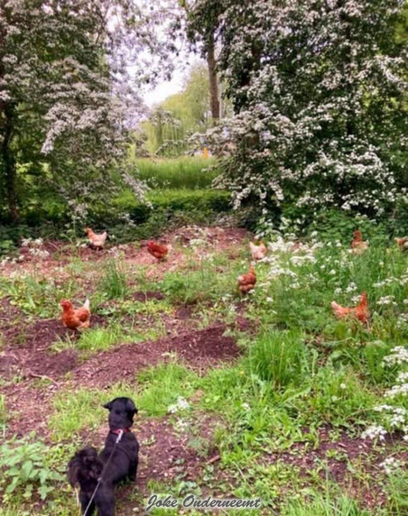 Bij de Bergingsvijver 8 kippen aan de wandel