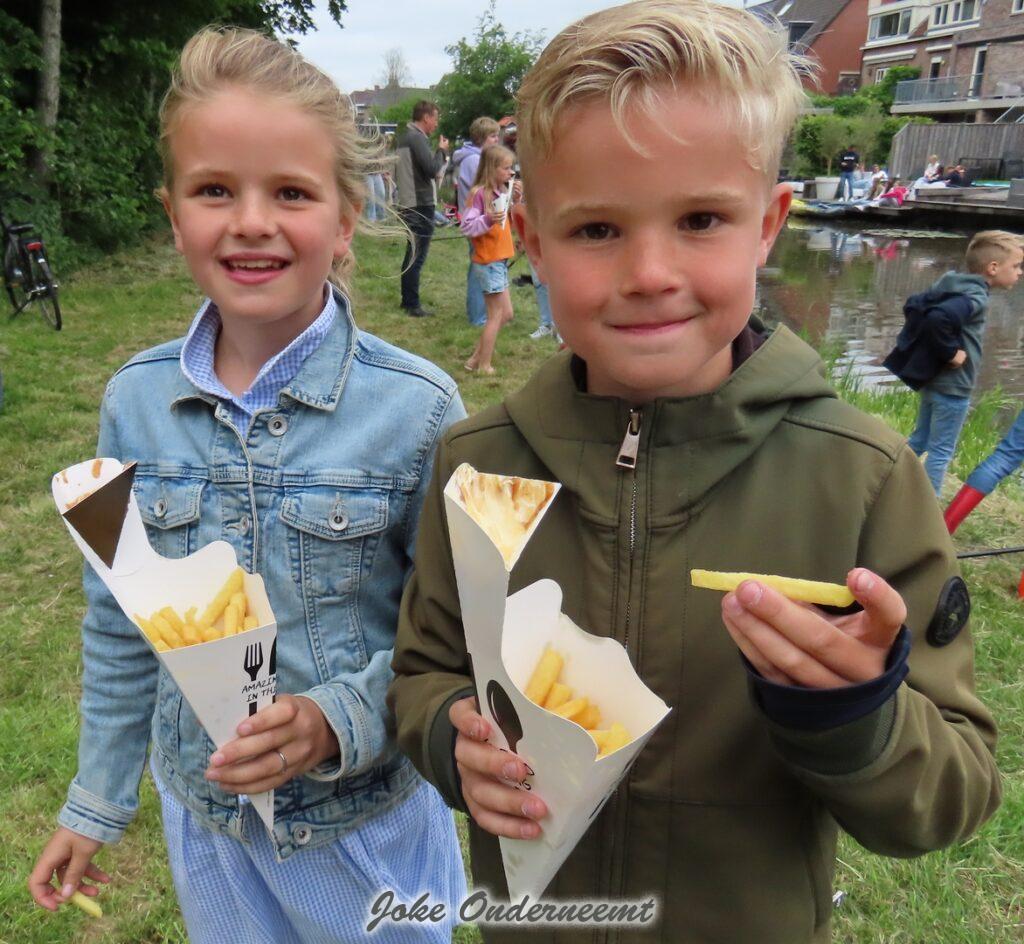 Nadat ze allemaal heerlijk een patatje en frikandel hadden gekregen , waren ze nu helemaal klaar om de wedstrijd te beginnen.